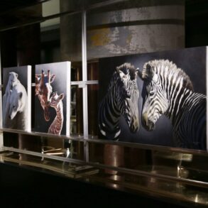 I dipinti di Marco Grasso, raffiguranti la natura selvaggia, sono esposti presso...
