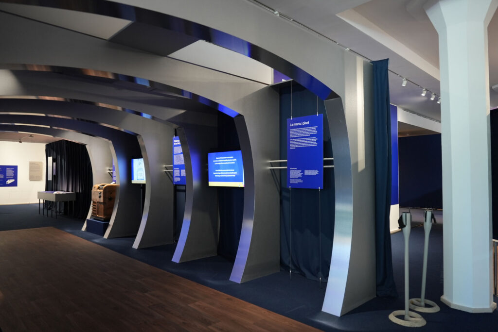 La mostra, curata da Peppino Ortoleva insieme a Giuliana Galvagno, si articola in quattro sezioni. “I media, i sensi” apre con una selezione di opere e materiali che evidenziano il rapporto tra arte e pubblicità, includendo una ricostruzione immersiva del Padiglione Rai alla Fiera Campionaria di Milano, tra radio, televisione e linguaggi digitali.
