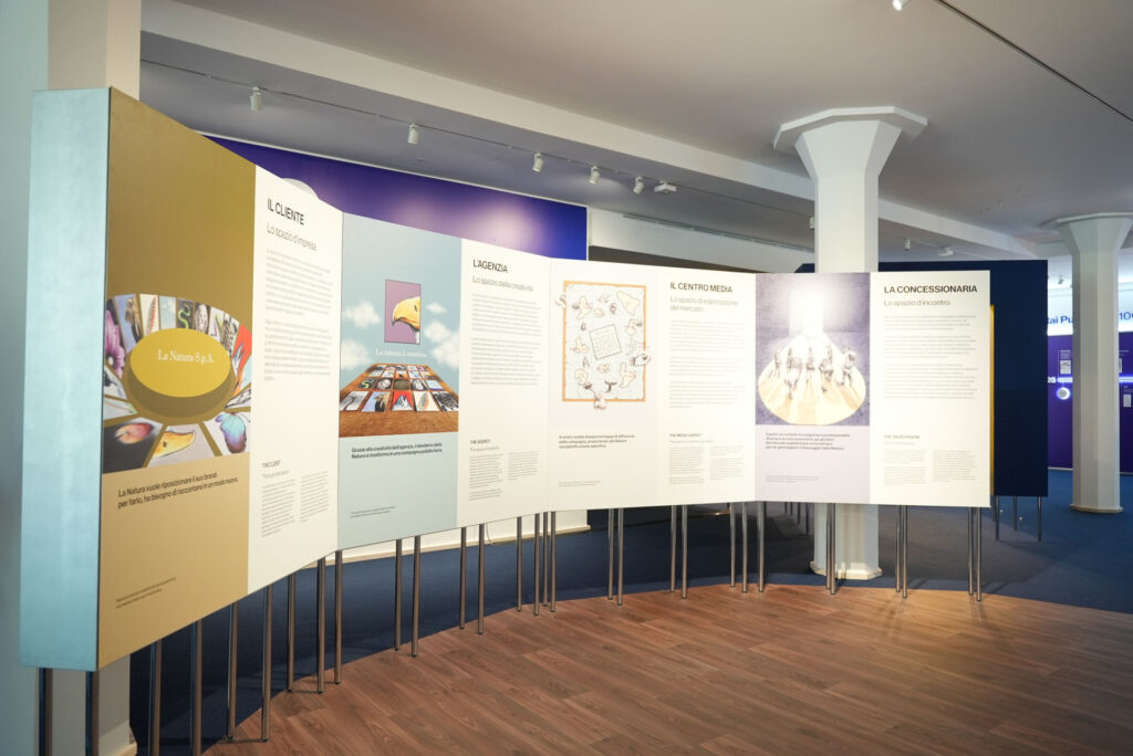 Con “I mercati, i protagonisti” entra in scena anche l’intervento dell’artista Yosuke Taki, che utilizza i codici del branding per una riflessione sulla sostenibilità. Il percorso prosegue con “I pubblici, le generazioni”, dedicato all’evoluzione delle audience, e con “La storia sotto gli occhi”, dove documenti e materiali d’archivio ricostruiscono la crescita industriale della concessionaria. Chiude “Parole del domani”, spazio aperto al confronto sui futuri scenari della comunicazione.