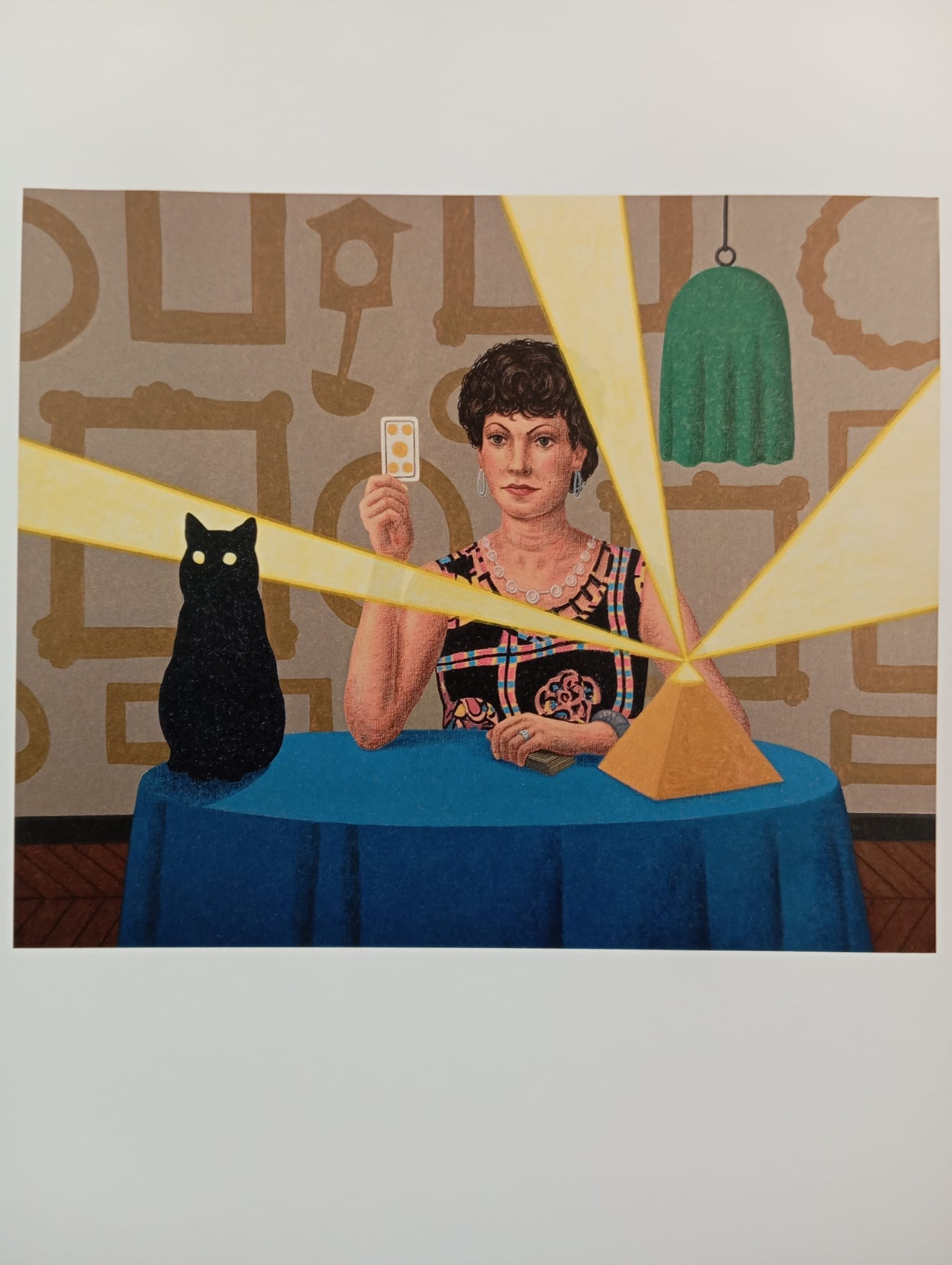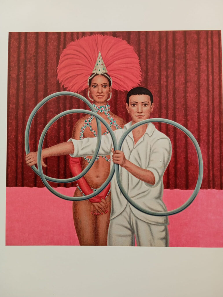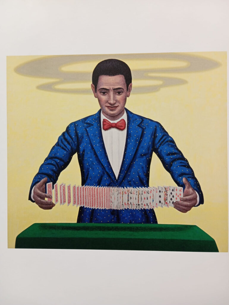Acrobati, maghe, giocolieri, cartomanti, illusionisti, distillatrici di profumi, donne in attesa forse, come antiche principesse vittime d’un incantesimo, del dono di un ammiratore lontano e sconosciuto che possa restituire loro una felicità perduta e vagheggiata”, scrive il curatore Alessandro Riva. “Sono questi i personaggi che Aldo Damioli ci imbandisce in questa sua serie di quadri insieme limpidi ed enigmatici, figure che abitano una zona laterale del reale, dove il gesto si sottrae alla funzione e l’azione perde scopo, caricandosi di una densità simbolica che ha a che fare con l’attesa, con il rito, con una sospensione del tempo ordinario. Lo stesso titolo della mostra, Le grand Jeu, rimanda alla rivista omonima fondata tra il 1927 e il 1928 da un gruppo di liceali francesi, poco più che adolescenti, tra cui Roger Gilbert-Lecomte e René Daumal, per i quali il ‘gioco’ non era evasione ma un banco di prova conoscitivo, capace di incrinare le forme stabilite del pensiero e della percezione. È in questa stessa linea che si colloca oggi la pittura di Damioli: non come racconto del mondo, ma come esposizione delle sue tensioni più segrete, dove anche l’arte, col suo potere metamorfico e misterioso, si colloca tra i grandi artifici simbolici capaci di incidere, se non direttamente sulle sorti del mondo, certo sulle coscienze, sugli stimoli, sulla percezione, sui confini stessi dell’immaginario di chi la ama, la colleziona e la vive nel proprio quotidiano”.