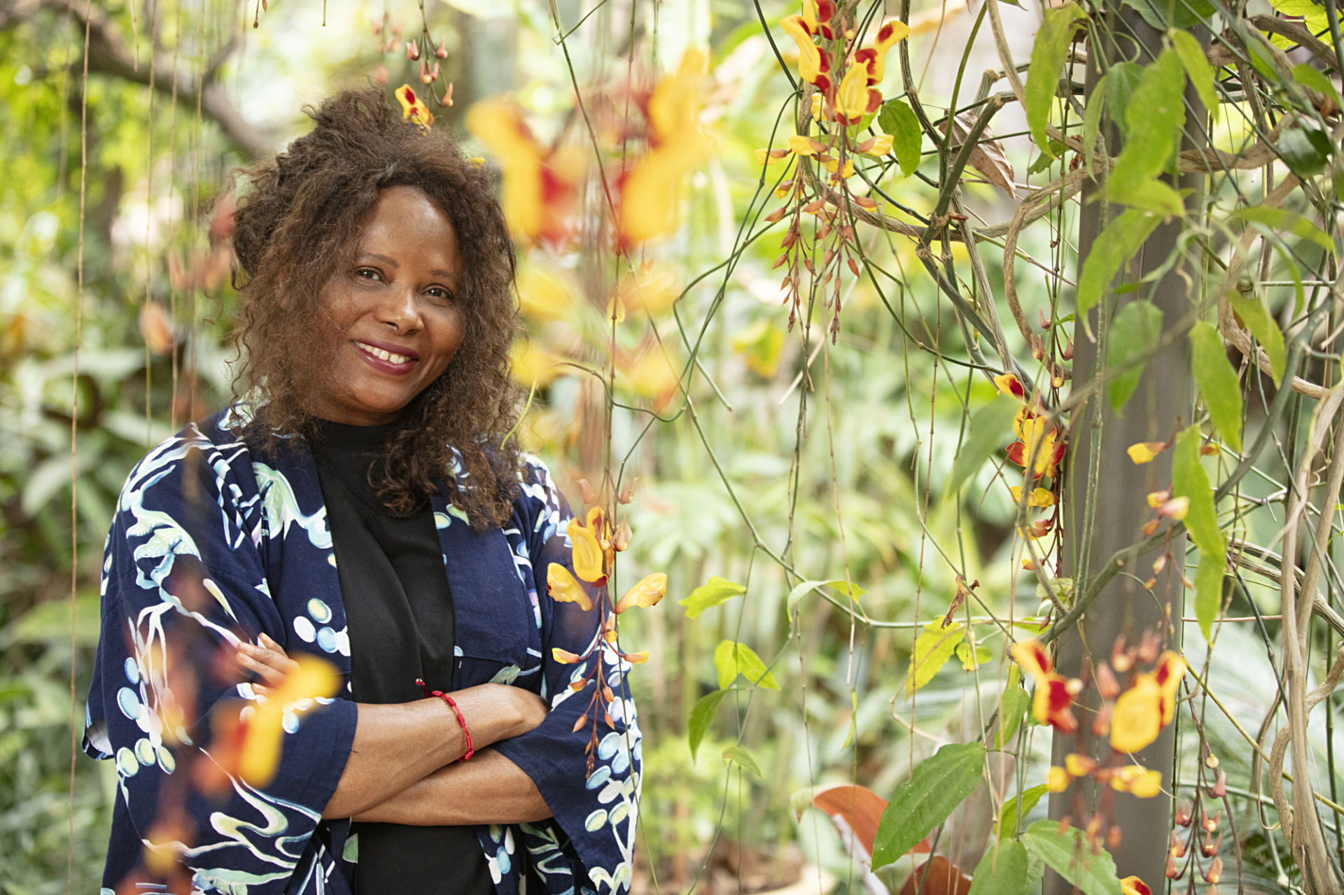 L’artista vive e lavora tra il Portogallo, il Brasile e l’Angola, muovendosi tra una diversità di territori, esperienze e culture che si riflette nelle sue opere, in particolare nel modo in cui ritrae le figure femminili: presenze fragili, incomplete e integrate in pattern geometrici che richiamano produzione in serie, mercati globali ed eredità coloniali ancora in atto.