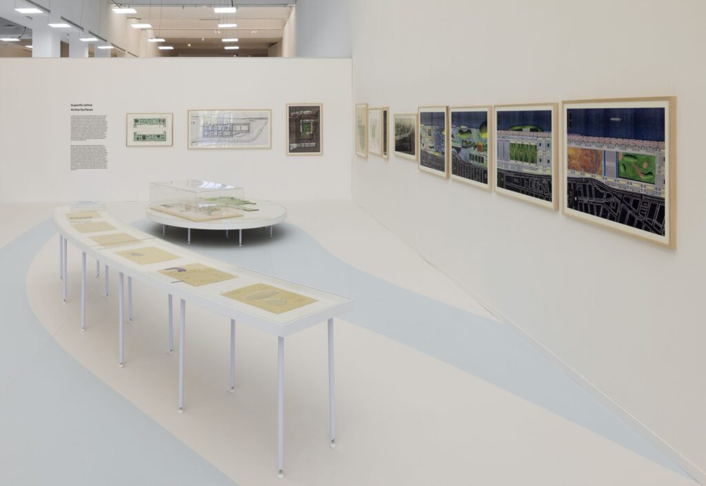 Sono esposte oltre 400 opere, tra installazioni ambientali, modelli e disegni, oggetti di piccole e grandi dimensioni provenienti da serie note e meno conosciute, insieme a video e documenti d’archivio. Il percorso inizia e finisce con due autoritratti e comprende una grande installazione site-specific dedicata a No-Stop City (1969-1972), progetto fondativo che ha cristallizzato l’idea branziana di “scrittura territoriale” e rappresenta una critica radicale alla metropoli moderna. La mostra esplora anche le numerose sperimentazioni in ambito architettonico, paesaggistico e urbano, fino a culminare in una serie di schermi dedicati alle metropoli teoriche.