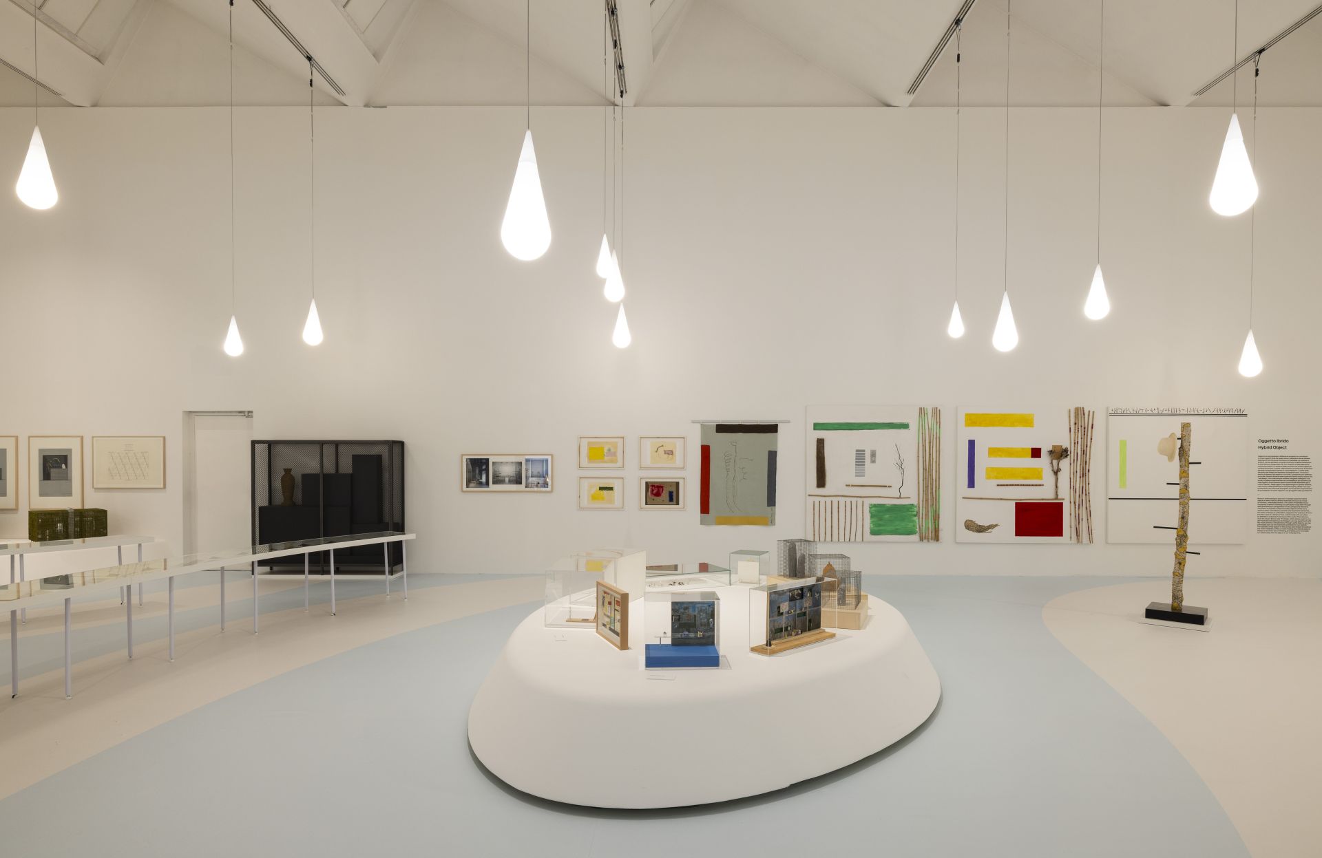 Il percorso espositivo si articola in un arcipelago tematico composto da undici sezioni, all’interno di uno spazio fluido in grado di favorire corrispondenze organiche, instabili e incessantemente rinnovate tra le opere. Dopo la riproduzione di Superarchitettura – la prima mostra di Archizoom del 1966 – e le prime linee di arredi e progetti, con un approfondimento dedicato a No-Stop City, si passa a un’ampia selezione di progetti per il territorio, raccolti in Metropoli teoriche, e alle sperimentazioni sui materiali condotte negli anni Settanta, riunite nella sezione Decorattivo. La sezione Superfici attive presenta una serie di progetti paesaggistici, mentre alcuni progetti di interni e di arredi sono visibili all’interno di Case a pianta centrale, tra cui la celebre serie Animali domestici. Al centro della mostra vengono riproposte le due installazioni ambientali di Open Enclosures, Ellipse e Gazebo, che anticipano l’installazione monumentale Record e Paradiso e gli altri lavori riuniti nella sezione Ambienti e dispositivi espositivi, incentrata sul ruolo dell’esposizione e della composizione nella pratica di Andrea Branzi e nella sua visione estetica e spaziale del mondo. La civiltà dell’ascolto, che riunisce i progetti giapponesi, si trova accanto a Musei, piazze, mostre, palchi, che esplora la sua attività curatoriale e museografica insieme ai programmi per gli spazi pubblici e le messinscene teatrali. Verso la fine del percorso emergono isole tematiche con oggetti e progetti di carattere antropologico come Ospitalità cosmica, incentrata sulla coabitazione e collaborazione tra specie diverse, e Oggetto ibrido, in cui il design di Branzi supera le barriere grazie alla sperimentazione di pratiche di innesto. Ultimo a essere elencato, ma non meno importante, lo spazio dedicato alle pubblicazioni e alle interviste video inedite realizzate da Hans Ulrich Obrist – a metà del percorso ideato dai curatori – sottolinea il valore della formazione e della trasmissione come dimensioni centrali nella pratica di Branzi.