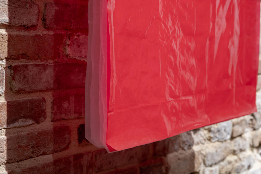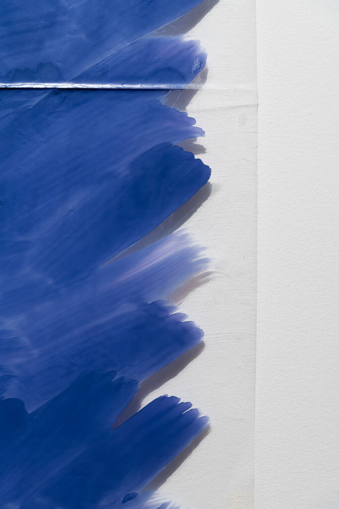 A partire dagli anni Ottanta, i cicli Quantità libere, Polietileni, Banchise ed Ekleipsis segnano un passaggio decisivo nella sua ricerca. L’adozione del foglio di polietilene come medium privilegiato trasforma la superficie pittorica in una membrana diafana, versatile ed eterea: non più semplice supporto, ma campo operativo in cui la pittura si ridefinisce come evento, processo e relazione nello spazio. Tagliato, piegato, stratificato, sagomato o lasciato floscio, il polietilene diventa opera autonoma, affrontando a un nuovo livello il problema della visione e del suo limite, del recto e verso della pittura, della sua estensione ambientale.