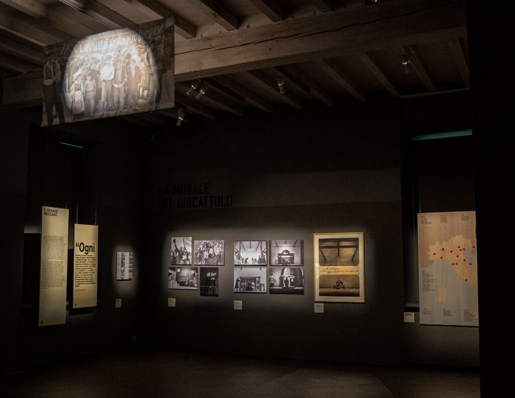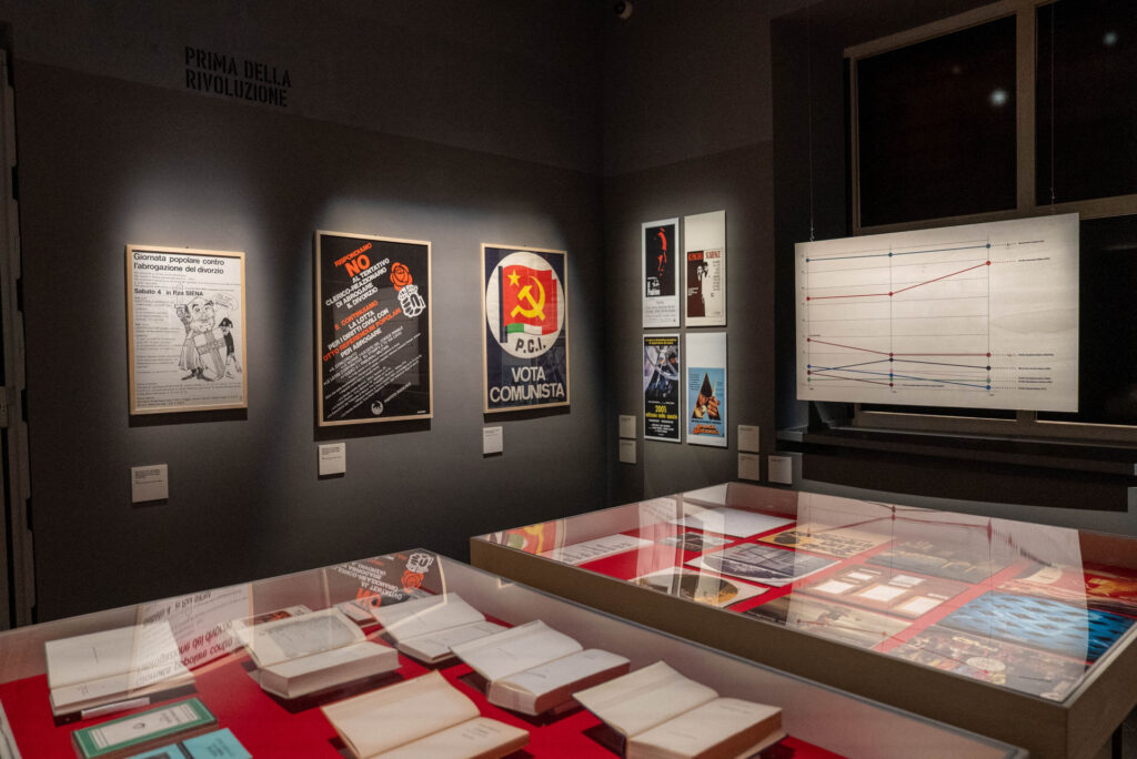 › il contesto. Gli anni Settanta e l’Emilia dei Bertolucci, con manifesti originali, prime edizioni di libri e dischi storici, fotografie, giornali, poster delle grandi battaglie di un’epoca mossa dal gigantismo, accanto a memorie e reperti privati, intimi, della geniale famiglia Bertolucci e della loro terra natale;