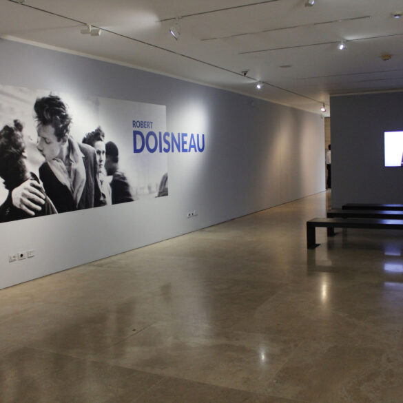 Lo scatto al bacio della giovane coppia, indifferente alla folla dei passanti e al traffico della place de l’Hôtel de...
