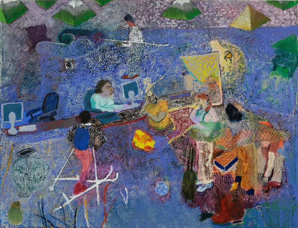 Henry Curchod (*1992 Palo Alto CA, vive a Londra), ispirato sia dalle sue radici curdo-iraniane che dalla sua educazione in un contesto occidentale, crea opere che suggeriscono fermento ed energia. Il disegno è centrale nel suo lavoro: inizia con schizzi leggeri a pastello a olio per poi intervenire con pennelli intinti in trementina che modellano i tratti gestuali, mentre linee finali a carboncino donano maggiore chiarezza alle figure. Nella sua pratica Curchod fonde astrazione e figurazione, introducendo prospettive e composizioni non convenzionali e dando vita ad una realtà onirica, bizzarra e aneddotica.