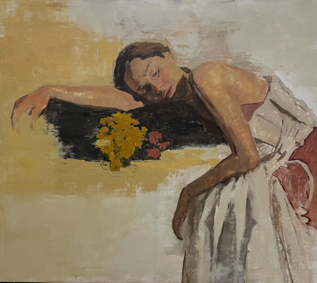 La luce, spesso filtrata da tonalità gialle, non illumina ma vela. Le ombre non oscurano, ma custodiscono. In questo equilibrio instabile, il corpo si fa eco, lo spazio si contrae, la pittura diventa luogo di introspezione.