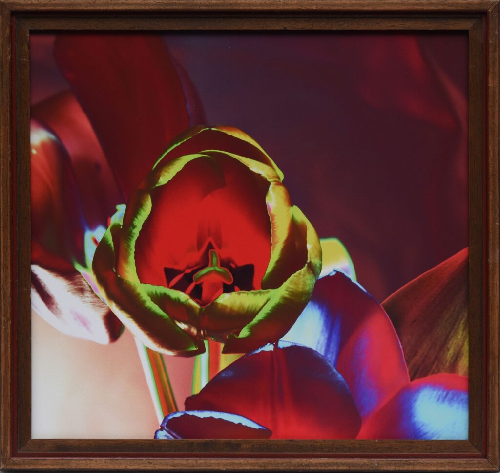 I nuovi Fiori, elaborati per la prima volta in post produzione, con colori ostinatamente cercati, talvolta improbabili, trovano la loro tranquillità e protezione nelle antiche cornici lasciate dal nonno, Giuseppe Palanti, pittore e professore all’Accademia di Brera, generando un paradosso stilistico e temporale. Un’operazione concettuale che per Romagnoli diventa un modo per sublimare la fatica creativa, ritrovare la propria identità e mantenere saldo il filo della memoria.