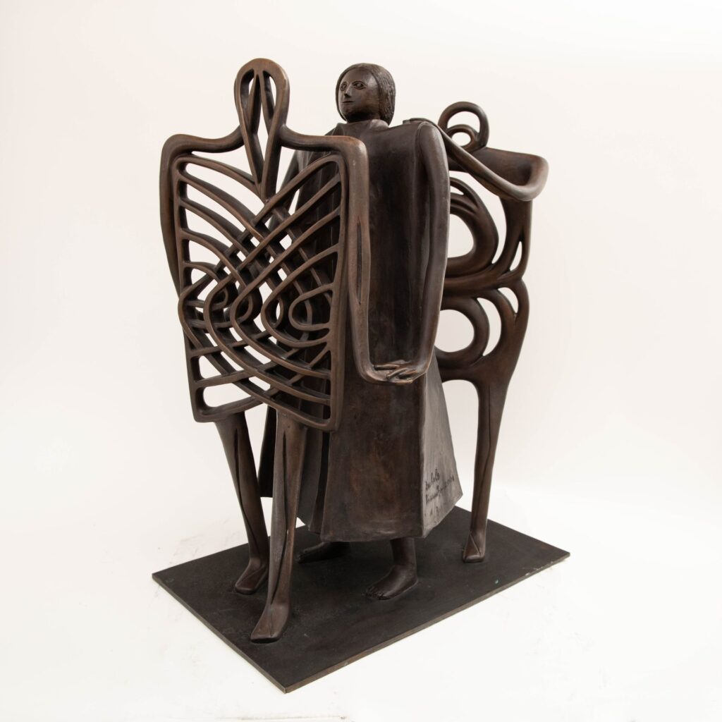 RACHELE BIANCHI (Milano, 1925–2018) è stata una scultrice e pittrice che ha sviluppato un linguaggio originale fondato sui suoi iconici «Personaggi», figure simboliche che affrontano temi come identità femminile, memoria e sacralità. Attiva dalla Milano del dopoguerra agli anni Duemila, ha lavorato con bronzo, terracotta, marmo e ceramica, distinguendosi per la “rete aperta”, segno emblematico di relazione e dialogo. Il suo contributo pubblico culmina nel Personaggio di via Vittor Pisani, prima statua di una donna realizzata da una donna nel patrimonio monumentale della città. Dal 2019 l’Archivio Rachele Bianchi ne custodisce e promuove l’eredità.