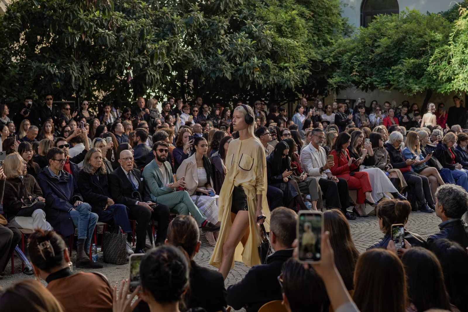 La collezione dialoga con la tecnologia grazie alla collaborazione con Sony: le modelle indossano le cuffie WH-1000XM6, che diventano strumenti di isolamento e ascolto, capaci di trasformare il silenzio in un lusso da indossare.