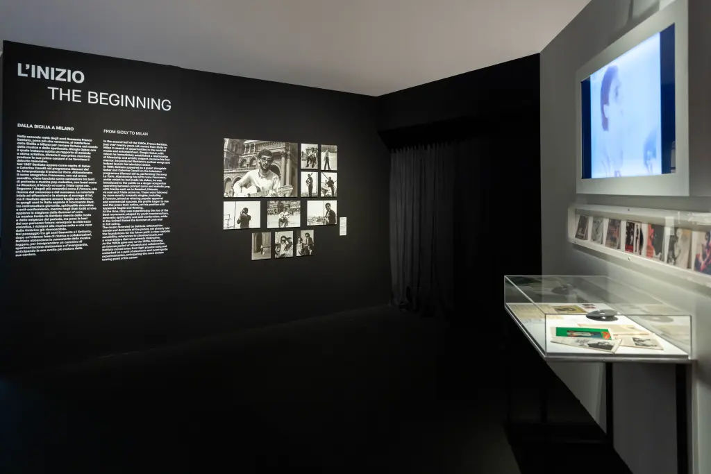 Il percorso espositivo si articola in sette sezioni tematiche che non seguono una linearità didascalica, ma disegnano un campo di forze, un sistema di ritorni e fratture. L’inizio (dalla Sicilia a Milano) racconta l’approdo nella capitale industriale degli anni Sessanta, tra canzone leggera, beat e prime apparizioni televisive. È un Battiato ancora in formazione, sostenuto da Giorgio Gaber, che già lascia intravedere una tensione centrifuga rispetto alle convenzioni del pop.