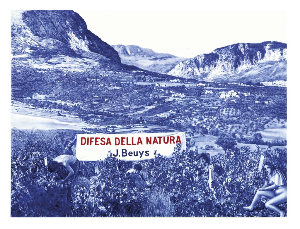 Per questa mostra vengono realizzati da Giuseppe Stampone 20 pezzi resi unici dall’intervento a penna dell’artista. Si tratta di Duchamp a casa Vermeer / Autoritratto d’artista, penna bic su stampa fineart su carta cotone, 30×40 cm.