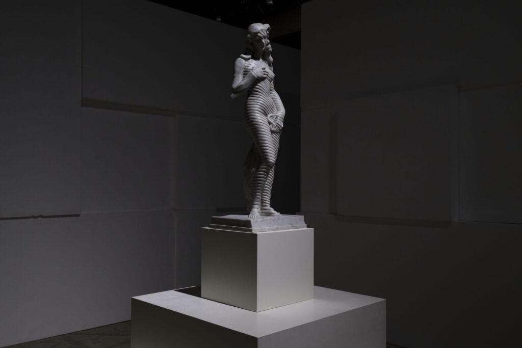Qui il canone non viene celebrato, ma ricodificato: Canova, la Nike di Samotracia, le Veneri diventano dati, superfici scansionate, immagini replicate all’infinito. La bellezza smette di essere misura e armonia per farsi terreno di conflitto, spazio di negoziazione continua tra fisico e digitale, emozione e macchina, identità e simulazione. Crespi lavora sulla soglia, là dove l’immagine perde la sua aura e acquista una nuova, inquietante potenza.