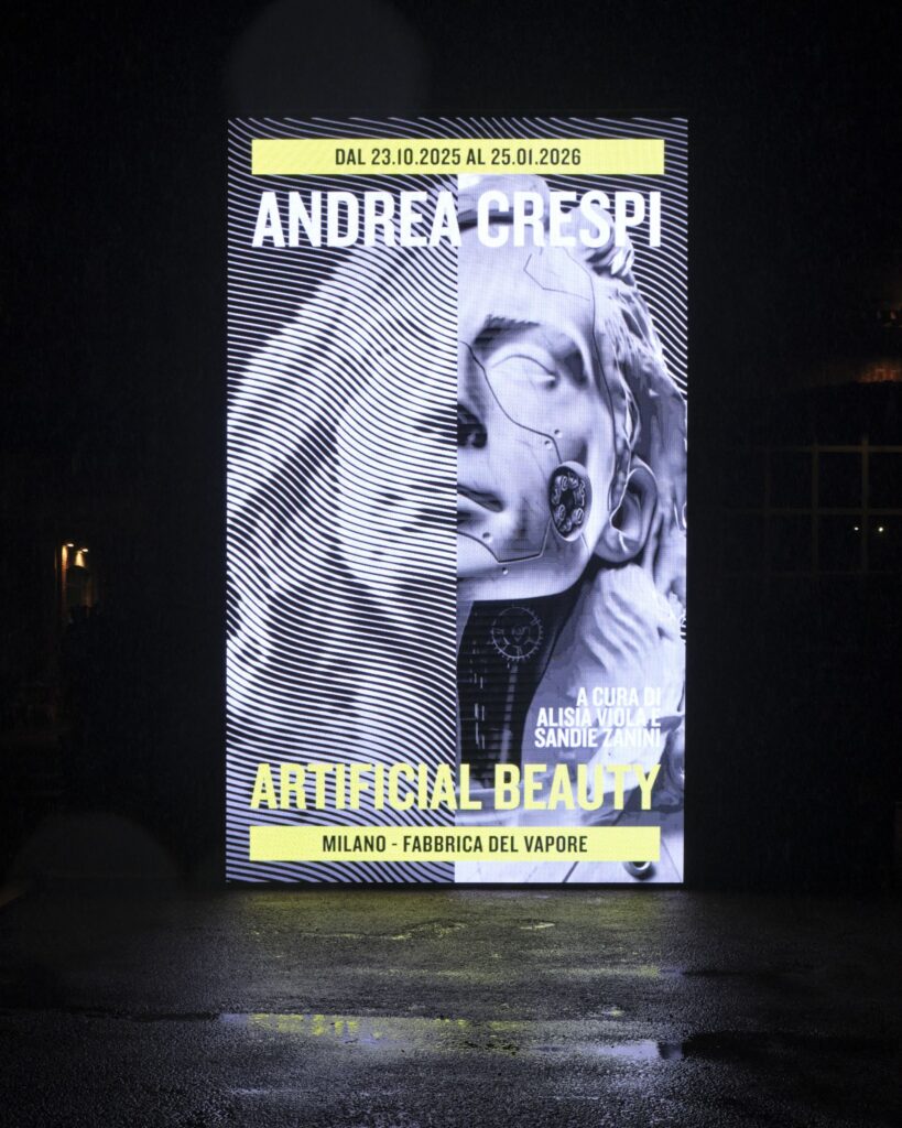 Andrea Crespi mette in scena una bellezza instabile, ibrida, attraversata da cortocircuiti tra memoria classica e intelligenza artificiale, tra gesto umano e calcolo algoritmico.