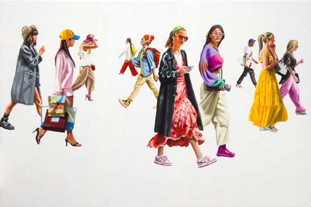Sì indubbiamente c’è anche un background cinematografico, forse negli ultimi anni i miei personaggi sono diventati meno sfocati e più iconici, ma amo molto la dinamica dei corpi e degli atteggiamenti