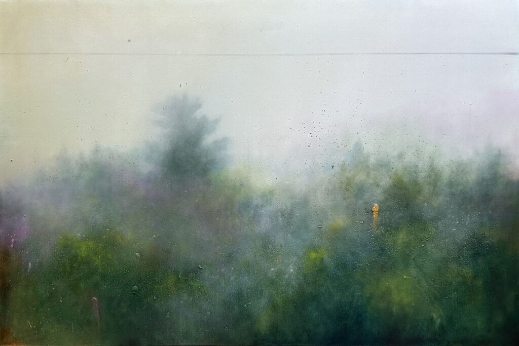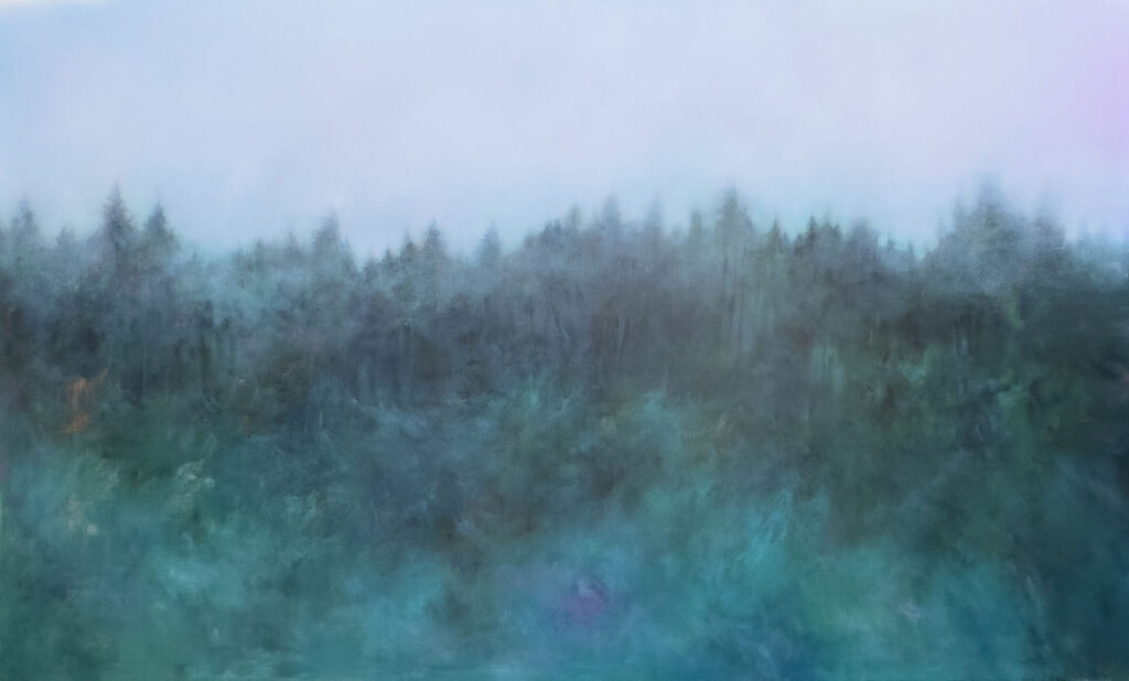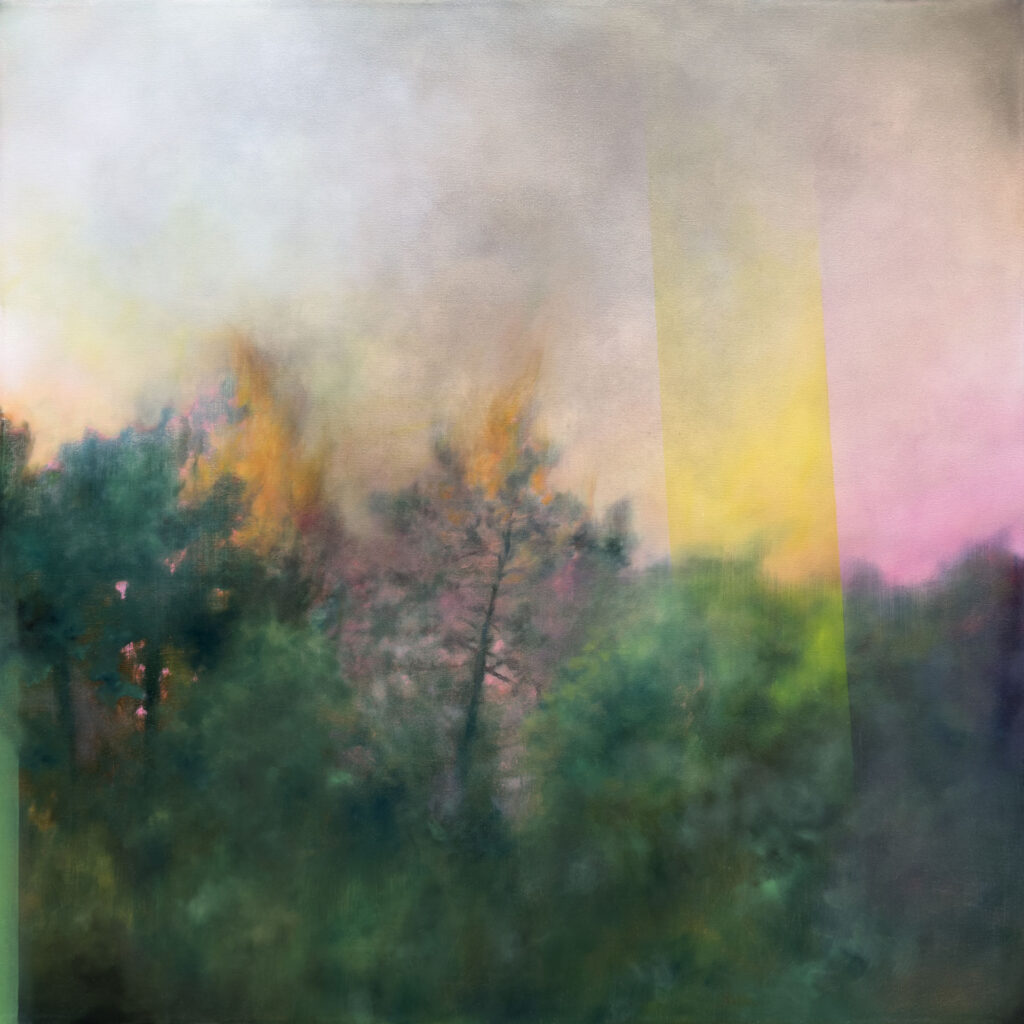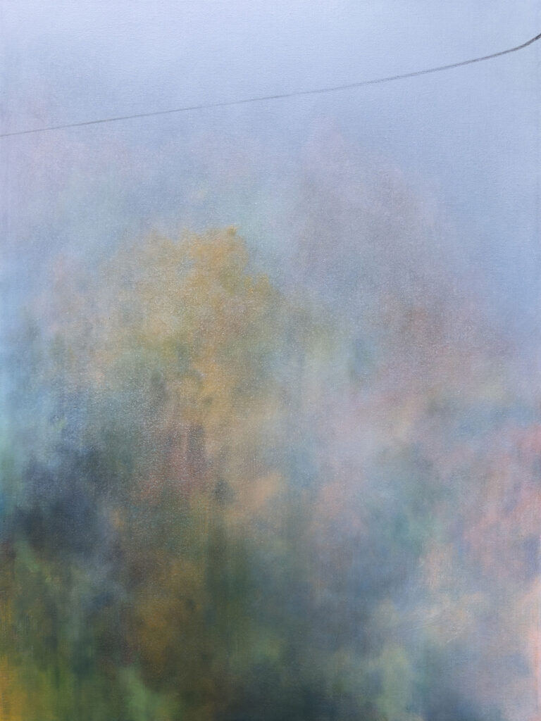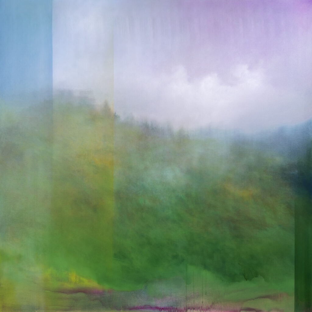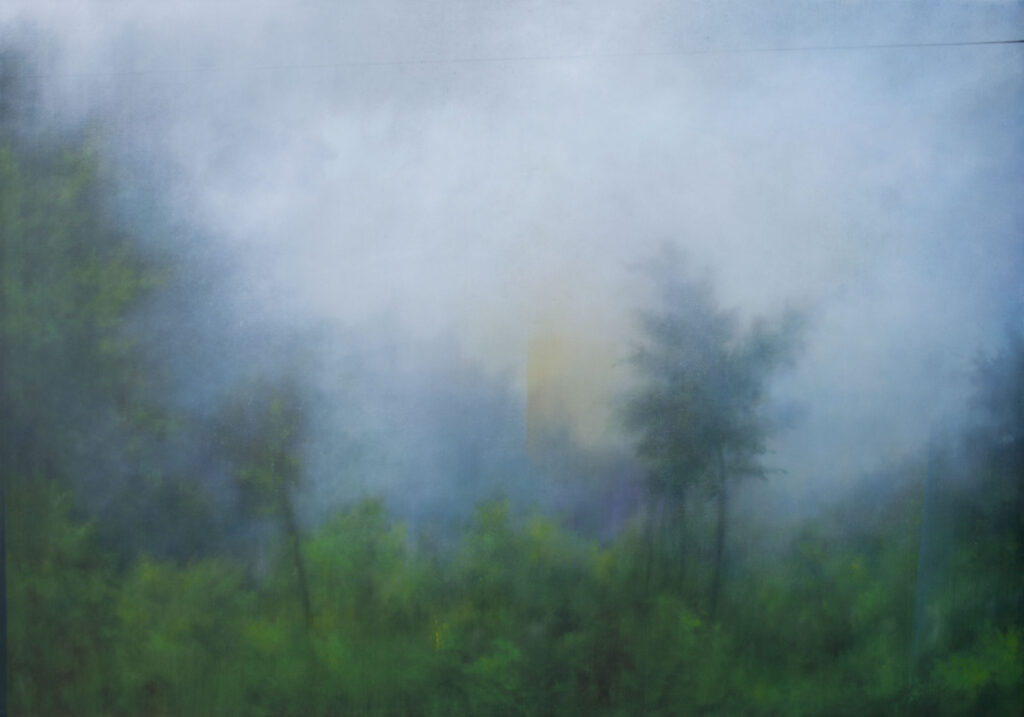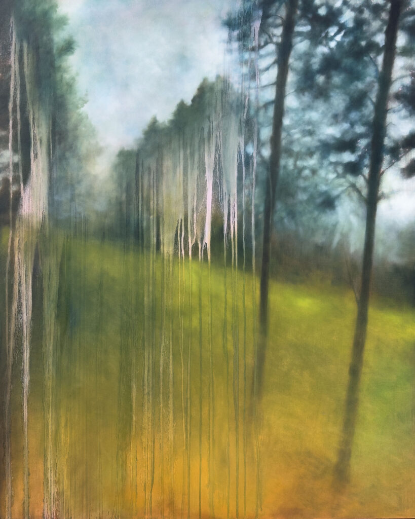 Vivere e lavorare circondata dai boschi mi aiuta ad avere un rapporto più autentico con la mia pittura. Questo contatto ravvicinato e diretto mi fornisce sempre nuovi spunti; mi dà la possibilità di stare in contatto con la terra, con le piante e con materiali che non riuscirei a trovare altrove; mi consente di osservare condizioni atmosferiche e di luce uniche, di entrarci dentro ed elaborarle secondo il mio sentire. Cerco di non adeguarmi ad immagini precostituite, ma provo ad attraversarle e dargli nuovi significati.