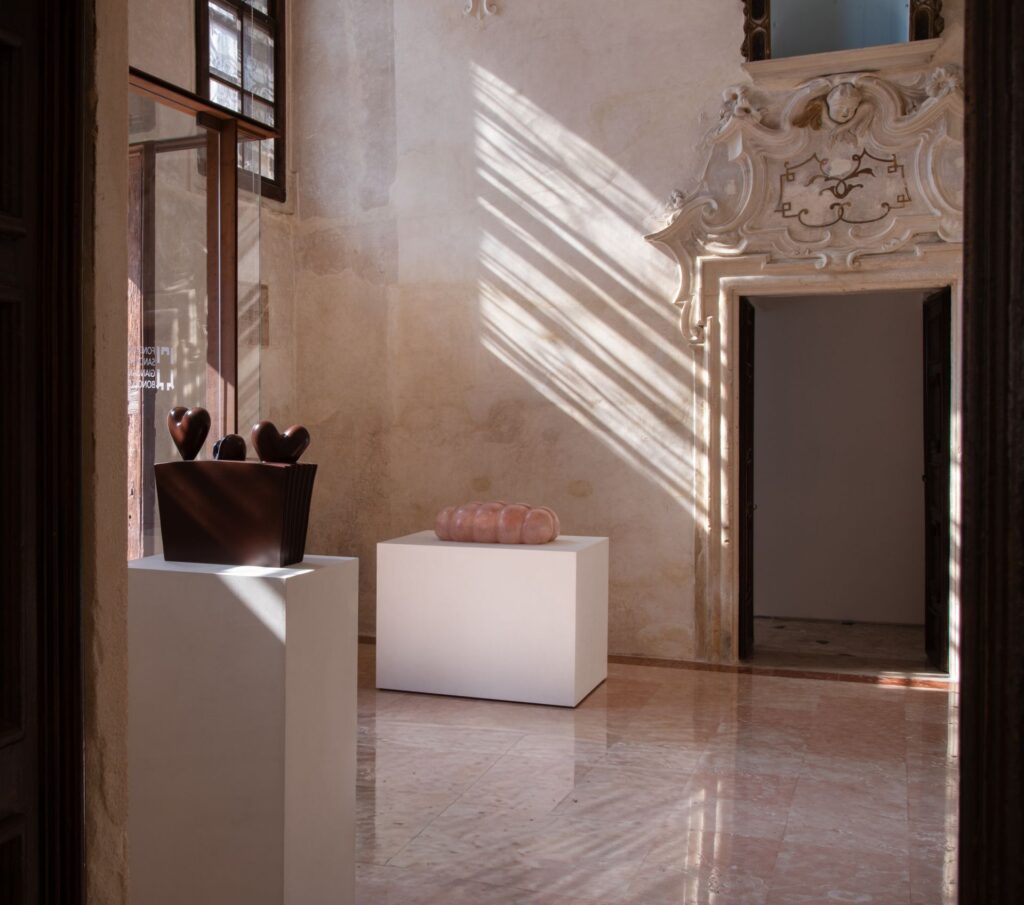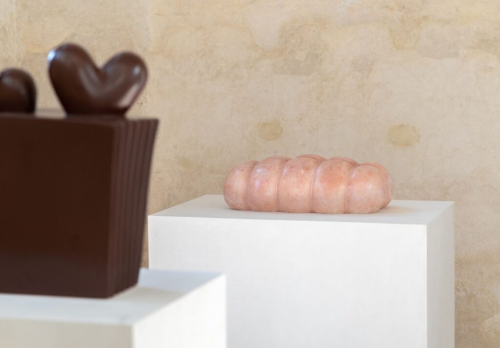 Dodici opere recenti, tra bronzo, ceramica smaltata, ferro e poliuretano, ci conducono in un paesaggio sospeso tra sogno e realtà: corpi e oggetti quotidiani si trasformano, le conchiglie, il sole, le nuvole e le galassie assumono forme surreali, e ogni pezzo sembra abitare uno spazio proprio, animato da un ritmo interno, sensuale e materico.
