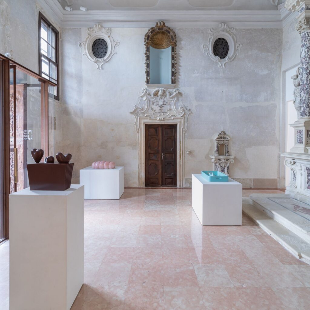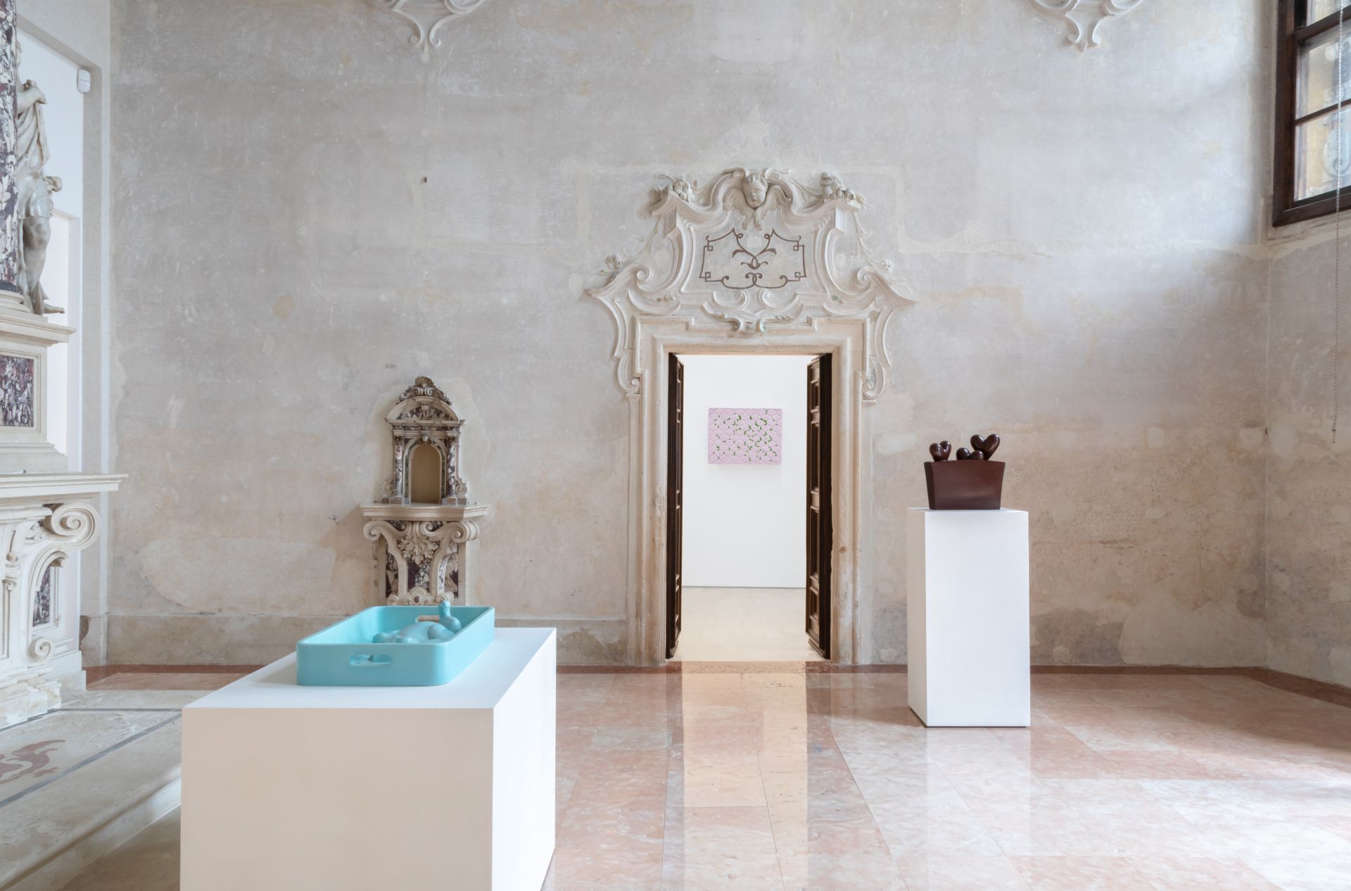 Le opere in entrambe le mostre fanno parte della stessa serie, ma i contesti espositivi sembrano trasformarne la lettura. A Thiene, le sculture appaiono sotto l’effetto soporifero dell’affresco del cielo nella Chiesa della Concezione di Maria Vergine, convertita a fondazione. Qui, i pezzi sembrano in diversi stati di reclinazione, di sonno: grandi felini, nudi, un unicorno, una falena e un pipistrello sembrano dormire a occhi chiusi, mentre le opere non corporee rappresentano cieli, galassie e catene montuose, prevalendo così una sensazione di spazio onirico.