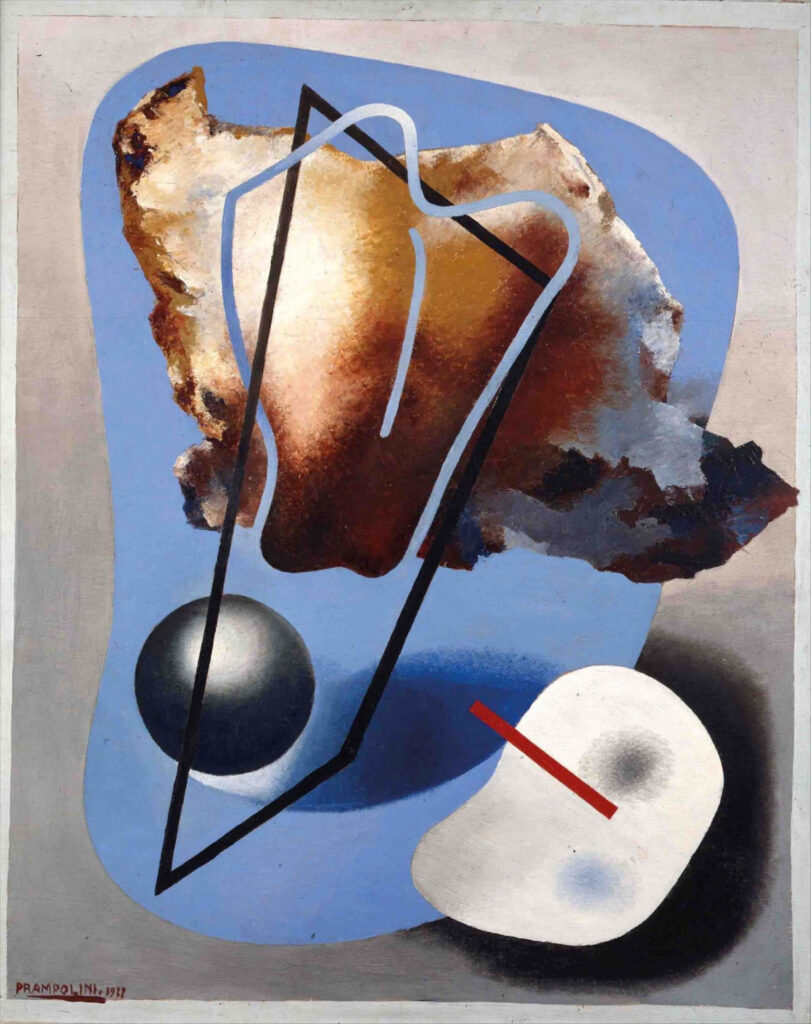 L’indagine storica e critica si concentra su due figure emblematiche di questa linea di ricerca e sperimentazione: Enrico Prampolini (Modena, 1894 – Roma, 1956), protagonista di un’arte che si distingue per la sua capacità di integrare le innovazioni futuriste con il meglio delle avanguardie europee, e Alberto Burri (Città di Castello, 1915 – Nizza, 1995), artista di straordinaria originalità noto per il suo utilizzo di materiali di scarto e di provenienza eterogenea, che ha rivoluzionato i linguaggio dell’arte del Novecento.