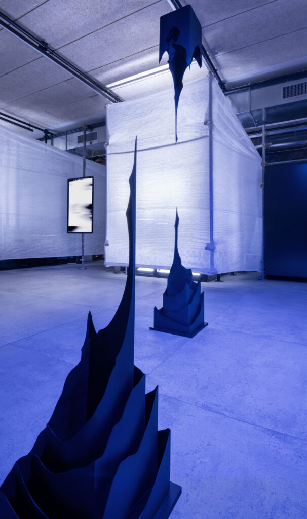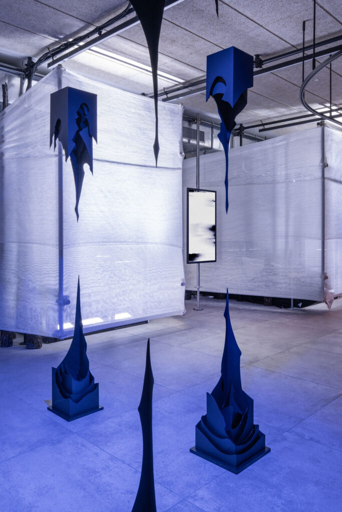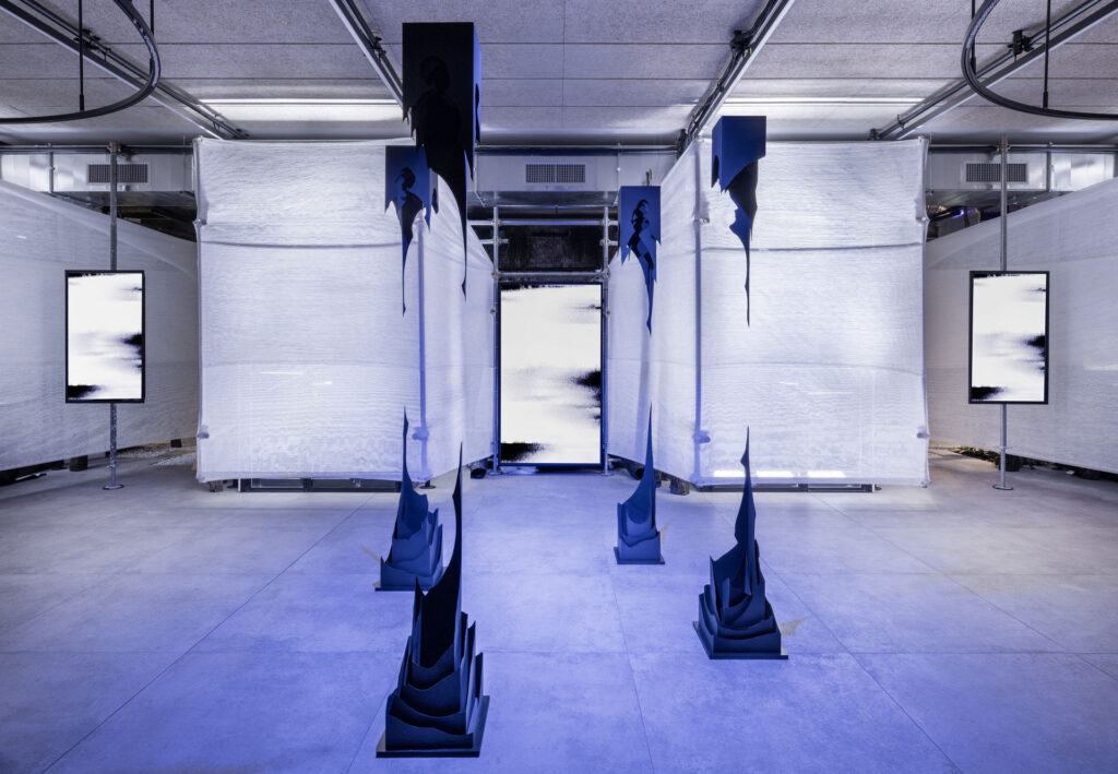 Quando Thiele le sfiorava, i pilastri diventavano strumenti. Sensori nascosti trasformavano il gesto in vibrazione sonora, e la scultura in un organismo risonante. Matter and anti-matter: la fragilità della carta che coesisteva con forme appuntite, quasi minacciose; l’astrazione che dialogava con silhouette più figurative; la staticità del materiale attraversata dall’energia dinamica del suono.