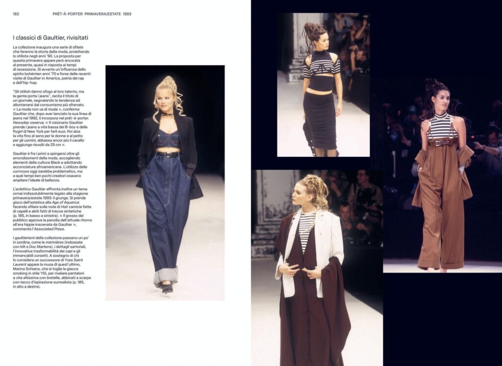 Il libro, realizzato in stretta sinergia con la maison, si offre come archivio totale: dalle prime sortite del 1977 all’addio scenografico del 2020, ogni collezione viene incastonata in un racconto che ne restituisce l’ossatura concettuale, le derive iconografiche, i cortocircuiti tra prêt-à-porter e couture. L’introduzione storica al marchio e la biografia del suo fondatore non indulgono alla celebrazione, ma chiariscono la postura di Gaultier: un autore che ha sempre navigato tra cultura alta e provocazione con l’ostinazione di chi vede nella moda un laboratorio sociale prima ancora che una grammatica estetica.