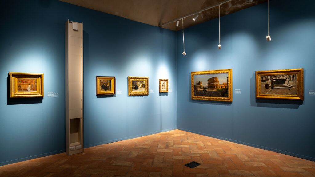 La quinta sezione è declinata tutta al femminile e illustra le diverse relazioni che numerose donne borghesi intrattenevano con le arti figurative. In sala incontriamo chi visitava le città d’arte e i loro straordinari musei, chi amava collezionare arte contemporanea e frequentava gli studi dei maggiori artisti per valutare personalmente le opere da acquistare per la propria collezione, chi amava dipingere per puro diletto e chi, invece, aveva coraggiosamente scelto di fare della pittura la propria professione. Tra gli autori presenti Silvestro Lega (1826-1895), Odoardo Borrani (1833-1905), Michele Cammarano (1835-1920).