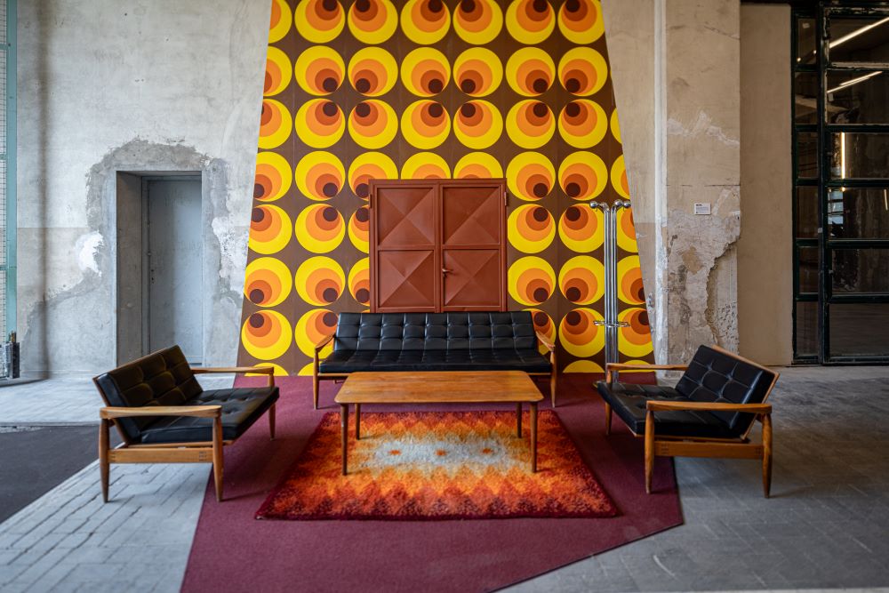 L’intervento progettuale dello studio q-bic, guidato da Luca Baldini, non cancella ma amplifica l’impronta originaria. L’allestimento lavora per sottrazione e reversibilità, evocando un’estetica di motel traslata in chiave post-industriale: sequenze di ambienti autonomi, percorsi obliqui, una fruizione che privilegia la deriva rispetto alla linearità.