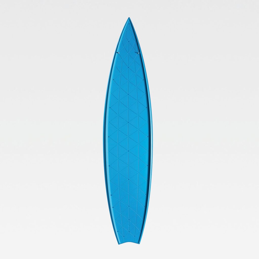 Persino un oggetto tecnico come la tavola da surf diventa terreno di sperimentazione. Qui Newson interviene con soluzioni ingegneristiche avanzate pensate per affrontare le onde giganti, trasformando un dispositivo sportivo in un laboratorio di materiali e aerodinamica.