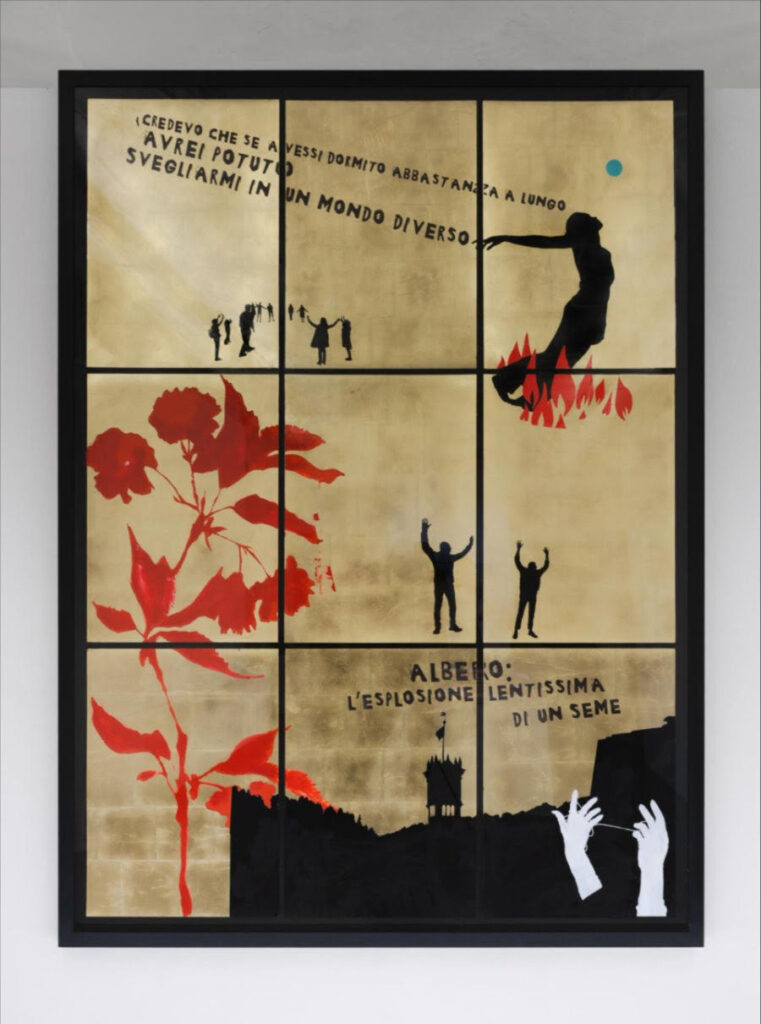 A partire dall’inedito collage, che dà il titolo alla mostra There is so much we can learn from the sun, realizzato in pieno spirito di comunità, empowerment ed emancipazione – «Come artista, il mio ruolo è quello di attivare un meccanismo l’opera – stessa – con l’intenzione di generare una forza trasformativa che nasce dall’incontro tra i suoi elementi costitutivi, raggiungendo infine lo spettatore», spiega Senatore -, le opere esposte trasformano la mostra in una straordinaria esperienza visiva, di immaginazione e di socializzazione di cui, protagonisti assoluti sono i corpi. Quello di Marinella Senatore, per esempio, nei suoi Autoritratto, uno su tela e uno scultoreo, e i nostri, come quelli delle otto milioni di persone che fino a oggi Senatore ha coinvolto nella sua pratica. Di fronte alle tele della serie Make it shine, alle sculture luminose in vetro (I Contain Multitudes), ai neon – Breathe, U Are Enough; Remember the First Time You Saw Your Name; We Rise by Lifting Others; Dance First Think Later – ai collage della serie The School of Narrative Dance – Storyline e, non da ultimo, alla luminaria Alliance des corps che si aprirà sullo sfondo di Cavalese circoscrivendo nello spazio un ambiente speciale, dove tutti possono celebrare l’incontro e lo scambio. Ognuno di noi, ogni spettatore, non è più soltanto involucro, bensì è atteggiamento, è sviluppo del nostro essere.