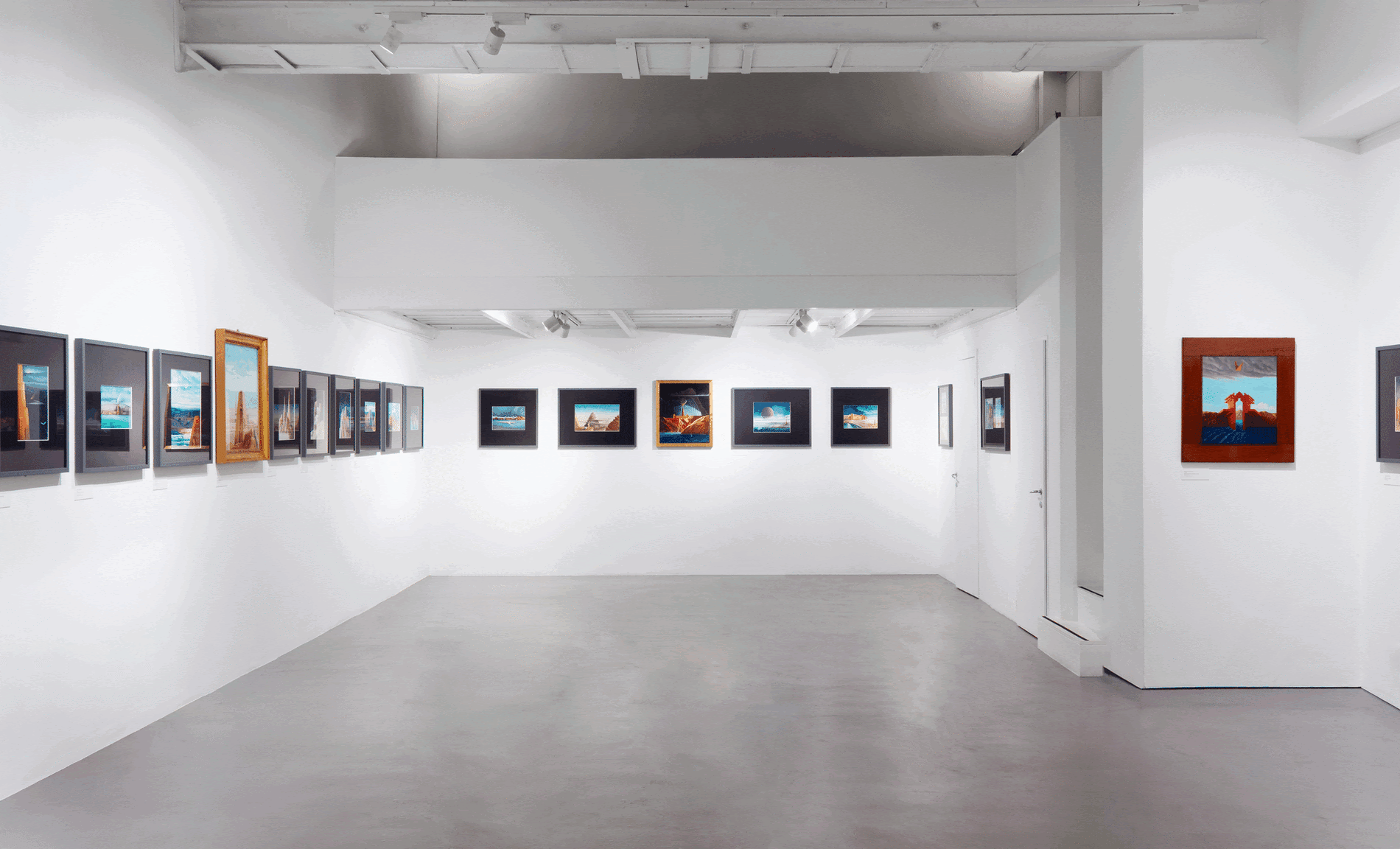 I dipinti di Scolari in esposizione evocano paesaggi metafisici in cui, come scriveva Daniele Del Giudice, “l’oggetto c’è, ma come un dopo silenzioso, l’oggetto come un mito, immagine esemplare, forma autonoma, non certo prodotto inferiore delle attività intellettuali ma imitazione della verità”. Pieni di “attesa”, in una quasi totale assenza di presenze umane, i suoi paesaggi sono abitati da torri, piramidi, ali, fortezze e montagne che compongono visioni immaginarie e paesaggi cosmici.