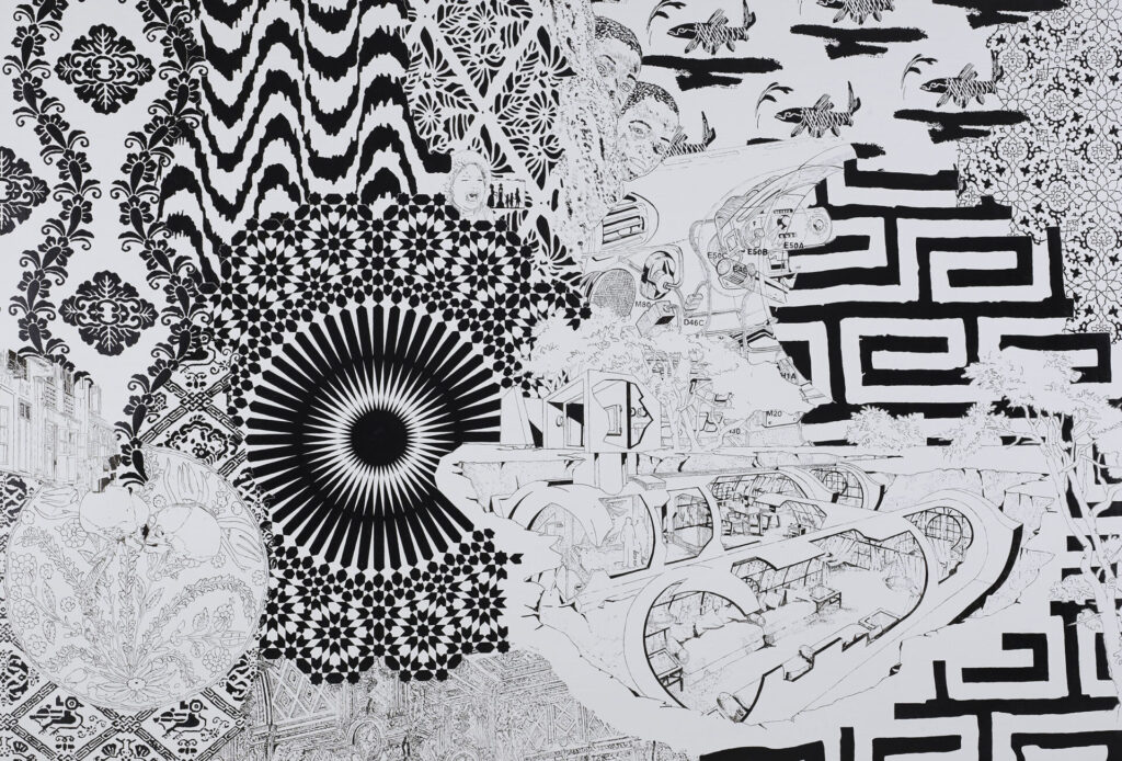 L’opera Metempsychosis, Circle Song Seven arricchisce la collezione della Galleria con un’espressione pittorica fibrillante, che rappresenta il microcosmo ironico e surreale di un artista che trasforma il segno grafico in un linguaggio visivo globale, che condensa in una bidimensionalità monocromatica l’invadenza consumistica dell’iconografia postmoderna.