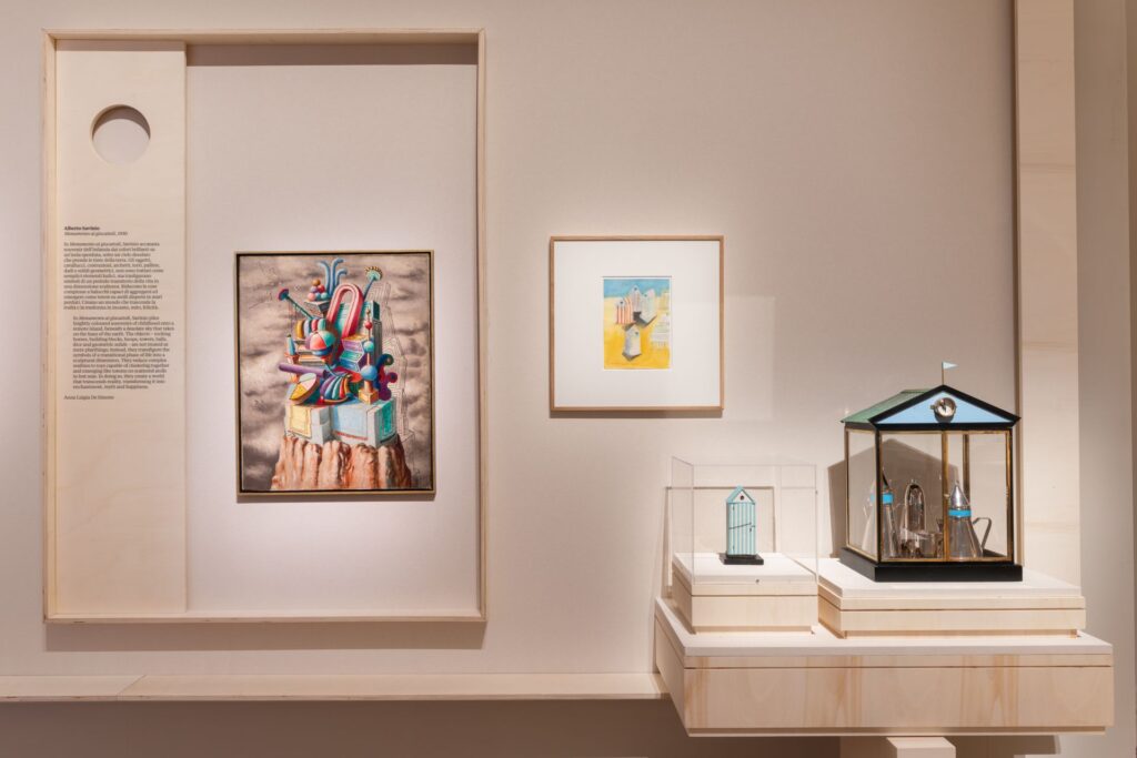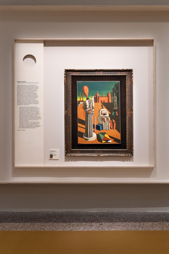 Oltre quattrocento opere – dipinti, sculture, fotografie, disegni, oggetti di design, modelli architettonici, riviste, fumetti, video e materiali sonori – provenienti da più di centosettanta istituzioni e collezioni internazionali, compongono un atlante visivo che restituisce la Metafisica non come stile chiuso, ma come postura mentale, come manière de voir destinata a riattivarsi ben oltre il contesto storico della sua nascita.