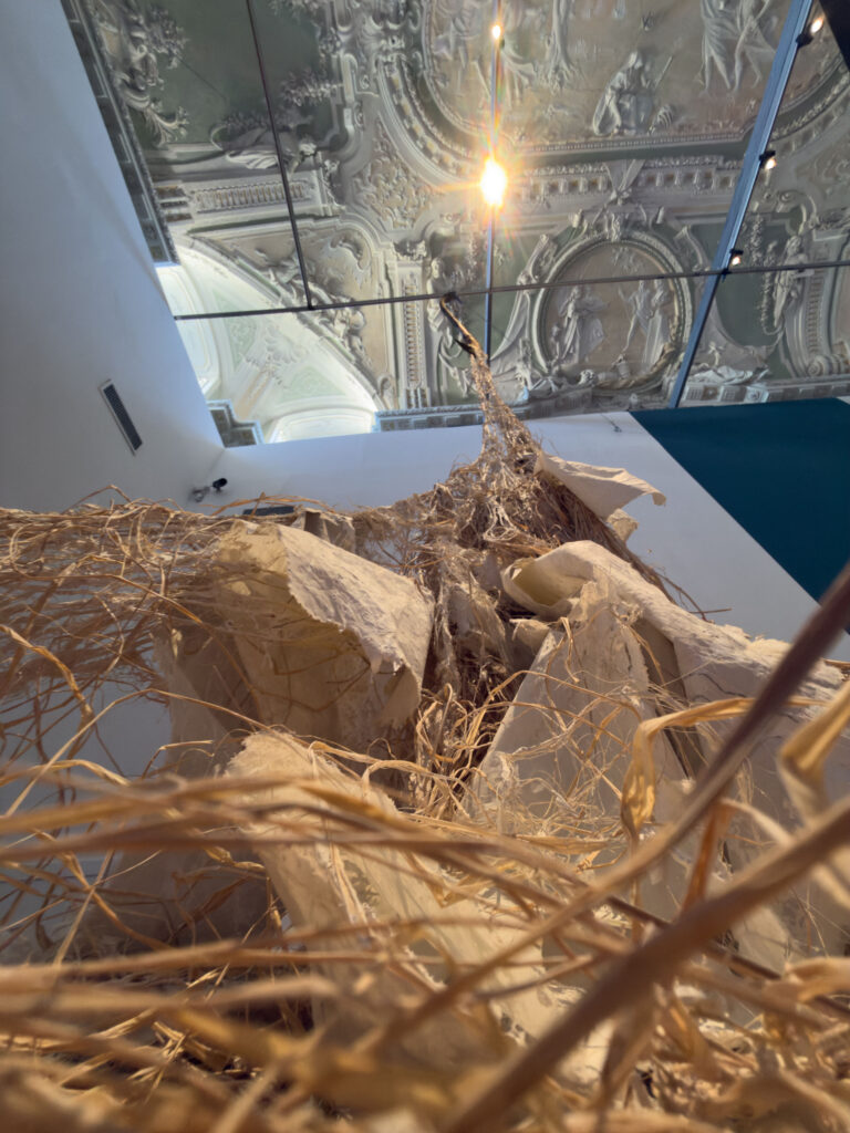 La mostra si articola negli spazi dell’Appartamento del Doge come un grande organismo vivente, un “pluriverso” – per dirla con le curatrici – dove opere e discipline si intrecciano in un dialogo ininterrotto. Grandi installazioni video, sculture, fotografie e incisioni costruiscono una drammaturgia visiva che abbraccia la complessità senza volerla semplificare.