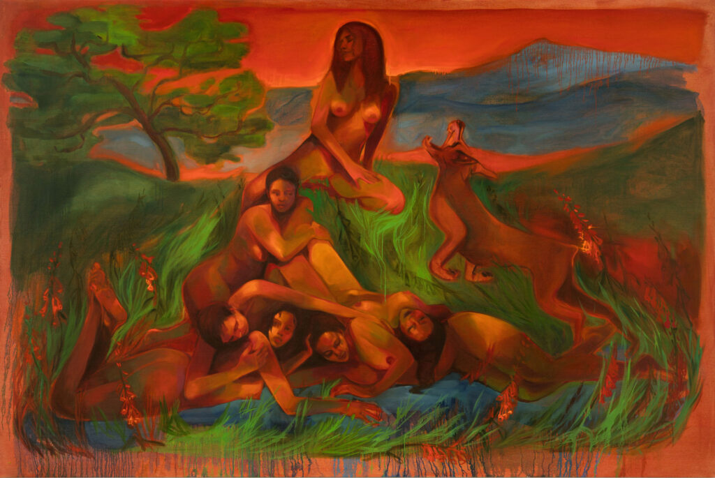 Vanessa Raw è una pittrice britannica il cui lavoro intreccia intimità, mito e mondo naturale. Le sue opere attingono alla mitologia greca e messicana, raffigurando donne e animali immersi in paesaggi incantati, sospesi tra un tempo arcaico e una dimensione altra. Le figure spesso si fondono con la terra stessa, circondate da una fauna e da una flora simboliche, cariche di significati stratificati.