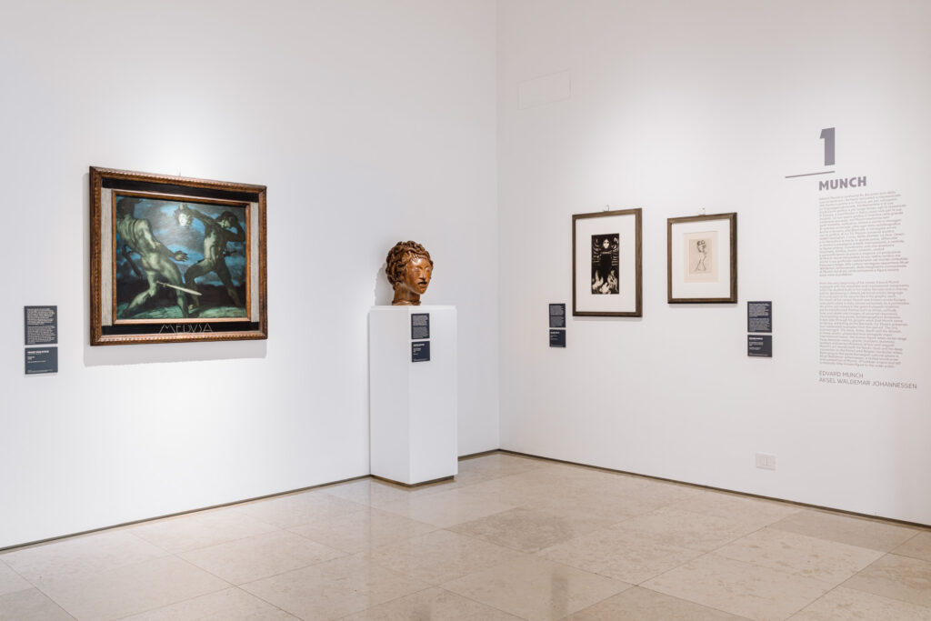Le sette sezioni della mostra, partono quindi proprio da Edvard Munch (Loten 1863 – Oslo 1944), al confronto con i fermenti naturalisti, impressionisti e con il connazionale, meno noto, Aksel Waldemar Johannessen (Kongsvinger, 1880 — Oslo, 1922): una vicenda artistica intensa e breve, con Munch condivide la ricerca di mondo interiore tormentato, ma affronta la realtà con un realismo sociale che si carica di tensione espressiva, distante dall’estetica francese che domina l’arte norvegese del tempo.