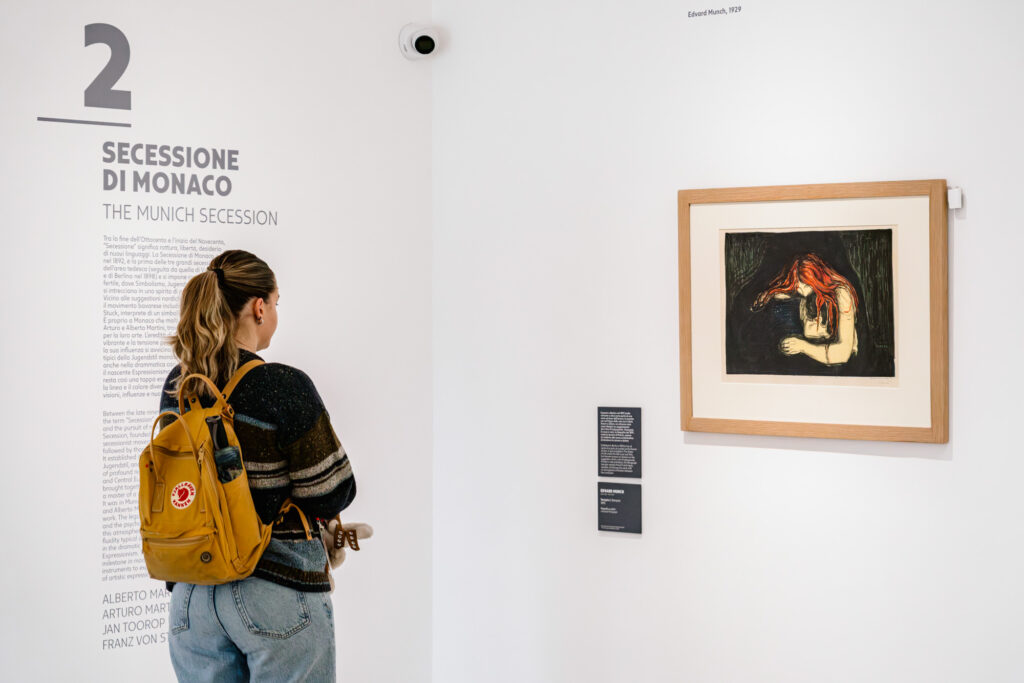 La nuova mostra ideata da Fondazione Musei Civici per il Centro Culturale Candiani – eccezionalmente ospitata nelle sale espositive del terzo piano – prende Munch come guida di una nuova avventura di scoperta dell’arte del nostro tempo, in un viaggio attraverso le collezioni civiche della Galleria Internazionale d’Arte Moderna – dove sono conservate quattro opere grafiche Edvard Munch Angoscia, L’urna, La fanciulla e la morte, Ceneri – nel segno della rivoluzione espressionista. Un progetto per riconnetterlo sia con le correnti artistiche dalle quali è partito sia con quelle che lui ha ispirato nei decenni successivi.
