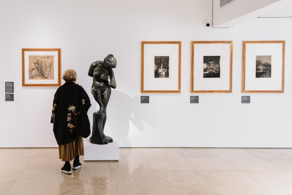 L’ampia rappresentazione di opere grafiche in mostra racconta il debito dell’Espressionismo tedesco al segno di Edvard Munch, la cui influenza, soprattutto nella grafica, è fondamentale per il gruppo Die Brücke. Artisti come Erich Heckel riscoprono la xilografia e le tecniche incisorie come mezzo diretto, essenziale, primitivo, ispirandosi tanto alla tradizione di Dürer quanto alle tecniche innovative del maestro norvegese. Dopo la guerra, una seconda generazione – tra cui si distinguono Otto Dix e Max Beckmann – traduce il trauma collettivo in immagini più crude e disilluse. Nella grafica, la figura umana è scavata fino all’osso: non più solo un grido individuale, ma il riflesso di una società lacerata.