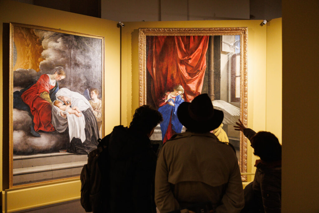 Il percorso, pensato come un atlante visivo delle sue migrazioni artistiche, segue Gentileschi da Roma a Genova, da Fabriano a Torino, fino alle corti europee di Parigi e Londra. Un viaggio che riflette non solo l’evoluzione di un linguaggio pittorico capace di mutare dall’eleganza tardo-manierista al naturalismo caravaggesco, fino a un lirismo cromatico di straordinaria finezza, ma anche la sua abilità nel dialogare con committenze illustri e contesti culturali sempre diversi.