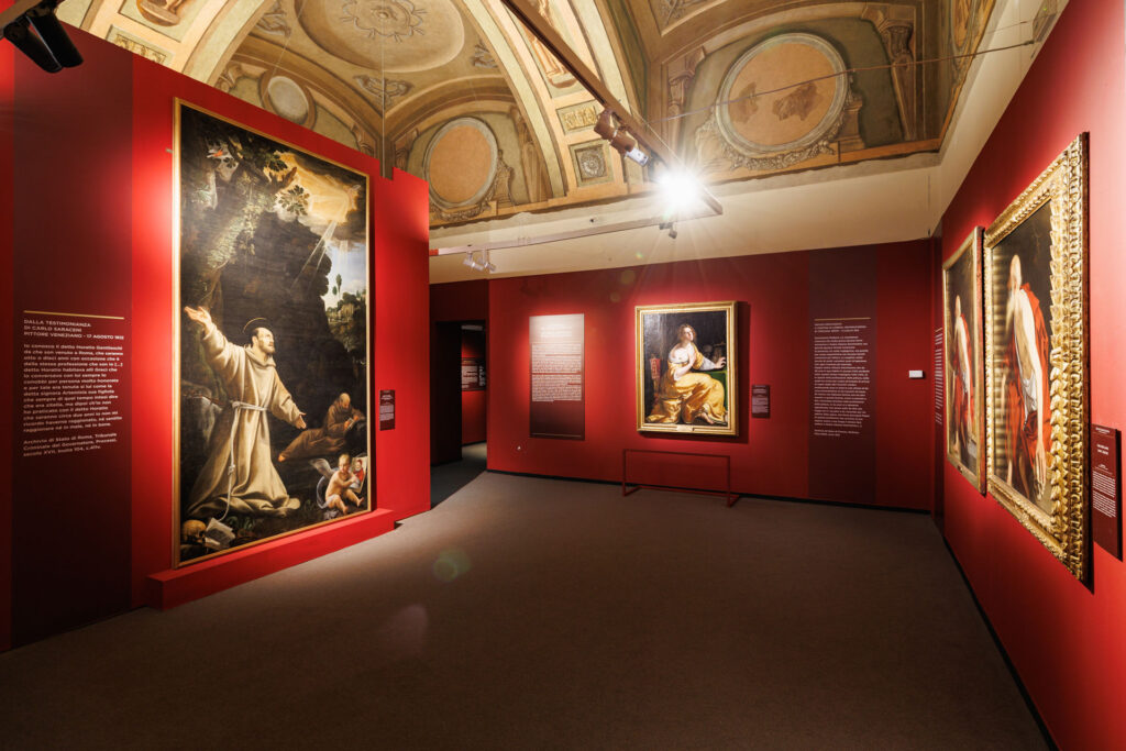 Proprio la rappresentazione di san Francesco d’Assisi, soggetto trattato più volte dal Merisi, risulta uno degli esempi più eloquenti per osservare questo avvicinamento di Orazio al naturalismo caravaggesco, esemplificato in mostra da tre versioni che raffigurano il santo realizzate nei primi anni del Seicento, provenienti dal Museo del Prado, da Palazzo Barberini e da collezione privata.