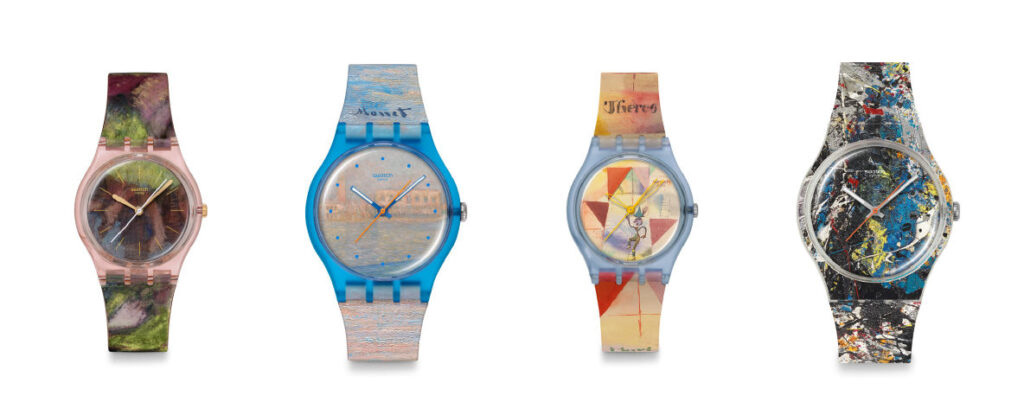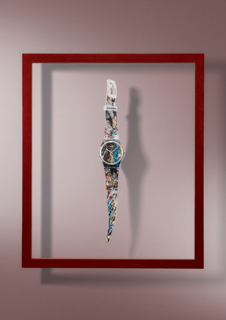 La collezione Swatch × Guggenheim, realizzata in collaborazione con il Guggenheim di New York e la Collezione Peggy Guggenheim di Venezia, mette in campo quattro orologi ispirati a Edgar Degas, Paul Klee, Claude Monet e Jackson Pollock.