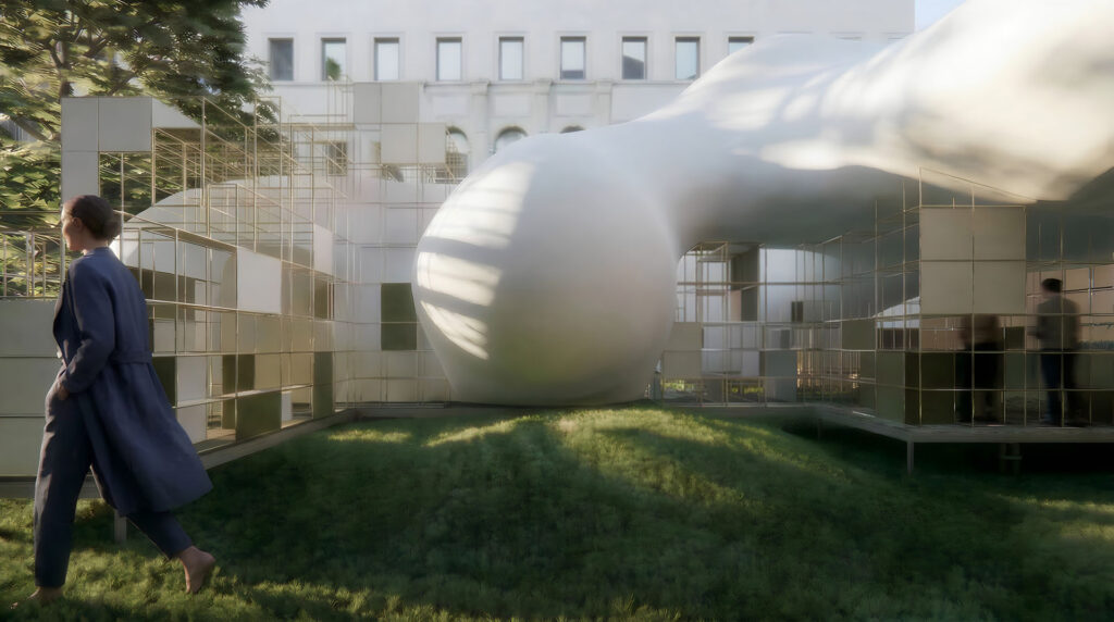 L’esperienza architettonica di Snøhetta modella il modo in cui questa relazione si sviluppa nello spazio. Noto a livello internazionale per i suoi progetti che mettono in relazione l’architettura con il paesaggio e l’esperienza umana, lo studio ha sviluppato una coreografia spaziale che permette all’installazione di fungere sia da presenza scultorea all’interno del giardino del museo sia da rifugio intimo. Il viaggio inizia con un reset: all’arrivo, ai visitatori sarà offerto un asciugamano caldo, un rituale di pulizia durante una settimana di sovrastimolazione. All’interno del bozzolo in tessuto, i visitatori si ritroveranno immersi in un paesaggio fatto di delicate frequenze sonore, luce diffusa, profumi e superfici tattili.