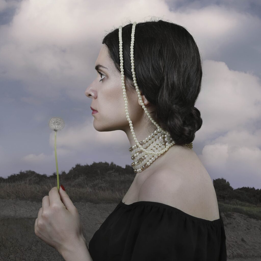 Con la prima serie fotografica in mostra Nihil sub sole novum (Nulla di nuovo sotto il sole) Debora Garritani reinventa la Vanitas in chiave contemporanea: elementi che rimandano alla tradizione pittorica come l’oro delle cornici, i riferimenti all’iconografia rinascimentale del ritratto, i cieli e i paesaggi ispirati a Raffaello, accanto ai simboli classici della Vanitas: il soffione, la bolla di sapone e il teschio che evocano la fugacità della bellezza, dei piaceri e della vita stessa. Così la vanità diventa lente critica sulla riduzione dell’essere a superficie. La serie richiama alla coltivazione di valori durevoli, alla responsabilità verso il sé autentico.