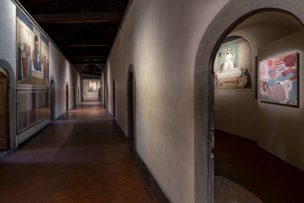 Il progetto espositivo non si limita tuttavia a Palazzo Strozzi. La mostra si estende alla città coinvolgendo due luoghi fondamentali per l’immaginario dell’artista: il Museo di San Marco e il vestibolo della Biblioteca Medicea Laurenziana. Al San Marco cinque opere di Rothko sono collocate nelle celle affrescate da Beato Angelico, creando un confronto inatteso tra due concezioni della pittura separate da secoli ma unite da una comune tensione spirituale.