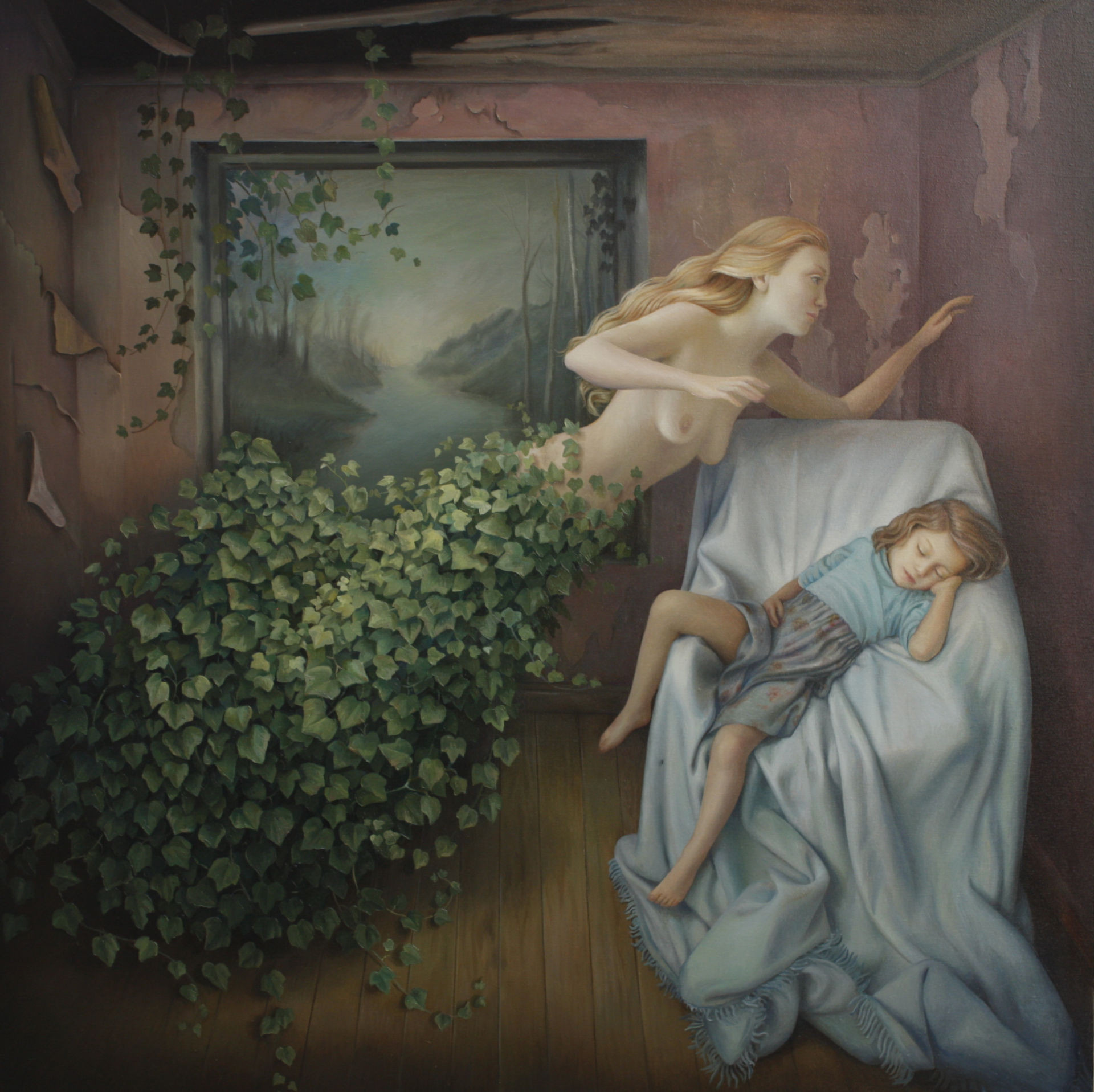 Accanto a lui, Ilaria Del Monte introduce una prospettiva visionaria e corporea. Le sue figure femminili abitano paesaggi immaginifici, sospesi tra eros e sogno, evocando un legame arcaico con la natura e opponendosi al dominio tecnologico del presente. L’eros, cifra ricorrente nella sua ricerca, diventa un atto di resistenza poetica: un gesto che restituisce al corpo la sua centralità, riportandolo al cuore dell’esperienza estetica. In questo contesto, il richiamo all’Ayers Rock, montagna sacra degli aborigeni australiani, assume il valore di simbolo primordiale, punto di contatto tra paesaggio e sacralità.