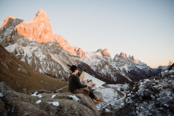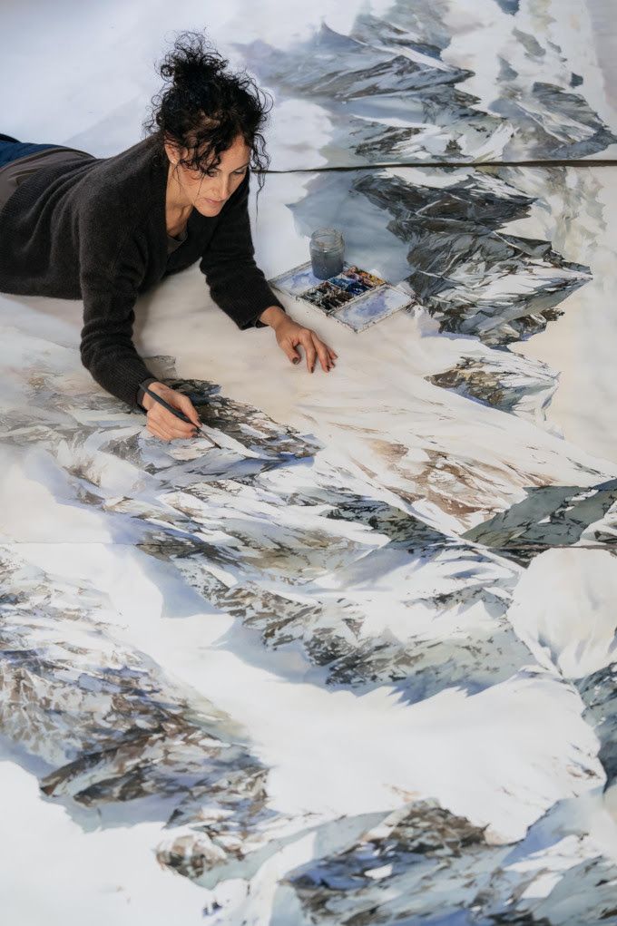 Silvia De Bastiani (Feltre, 1981), vive e lavora nella valle del Primiero, tra le Dolomiti trentine. È tra le più raffinate interpreti del paesaggio alpino contemporaneo, realizza acquarelli monumentali dipinti en plein air, spesso in condizioni estreme, che offrono allo spettatore un’esperienza avvolgente e multisensoriale: la pittura diventa un luogo dove si depositano luce, temperatura, silenzio, odori e vibrazioni raccolti nelle lunghe ore trascorse in montagna. È anche un viaggio interiore dell’artista che, attraverso il lento lavoro delle velature, svela e dispiega mondi emotivi, invitando lo spettatore a lasciarsi attraversare da quelle sensazioni e riflessioni che accompagnano la sua vita creativa, le stesse che, in modi diversi, appartengono a ogni essere umano nel proprio attraversare l’esistenza. Il virtuosismo tecnico è l’elemento che sorprende e conquista ed è uno dei tratti distintivi dell’artista feltrina. La sua capacità di dominare l’acquerello su grandi formati e all’aperto le consente di raggiungere una profondità espressiva che richiama i grandi Maestri del passato, ma la sua pittura non è solo abilità: è interpretazione, ascolto, rielaborazione, una sintesi che permette anche al visitatore meno esperto di cogliere l’essenza del paesaggio alpino. Nelle sue opere, la montagna non è solo soggetto, ma linguaggio identitario. Le Dolomiti, le cime venete e trentine, ma anche le Alpi lombarde, piemontesi, valdostane e svizzere diventano materia viva, colta con un approccio quasi scientifico alla morfologia, alla geologia, alla vegetazione e ai mutamenti atmosferici. Una pittura che unisce rigore e poesia, precisione e contemplazione.