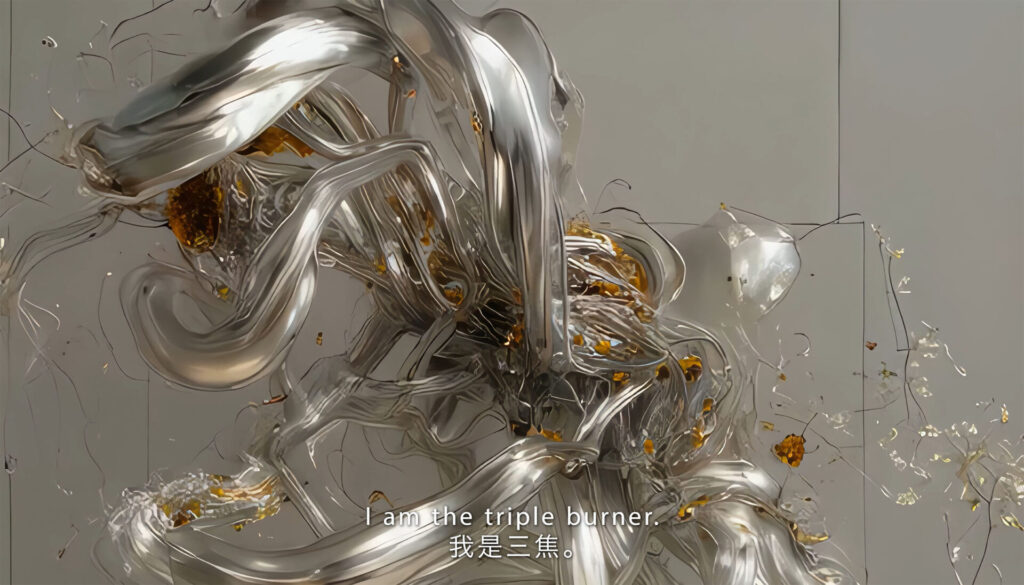 Il concetto di “meridiano”, così come si ritrova nel titolo, è inteso come punto di connessione tra dimensioni diverse: linea geografica, percorso energetico del corpo umano e legame simbolico tra luoghi distanti. Attraverso questa pluralità di significati, Sougwen Chung invita a riflettere sulle relazioni tra corpo, tecnologia ed ecosistemi terrestri, proponendoli non come ambiti separati ma come processi profondamente interconnessi.