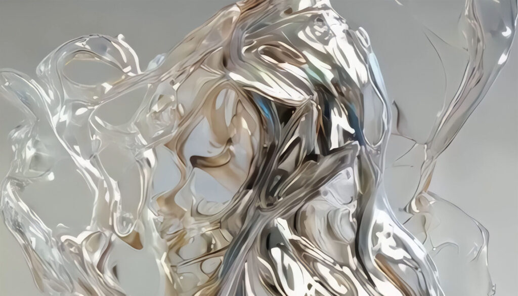 Il lavoro si configura come una serie di azioni biomimetiche, in cui forme digitali generate algoritmicamente evocano una forte dimensione organica.