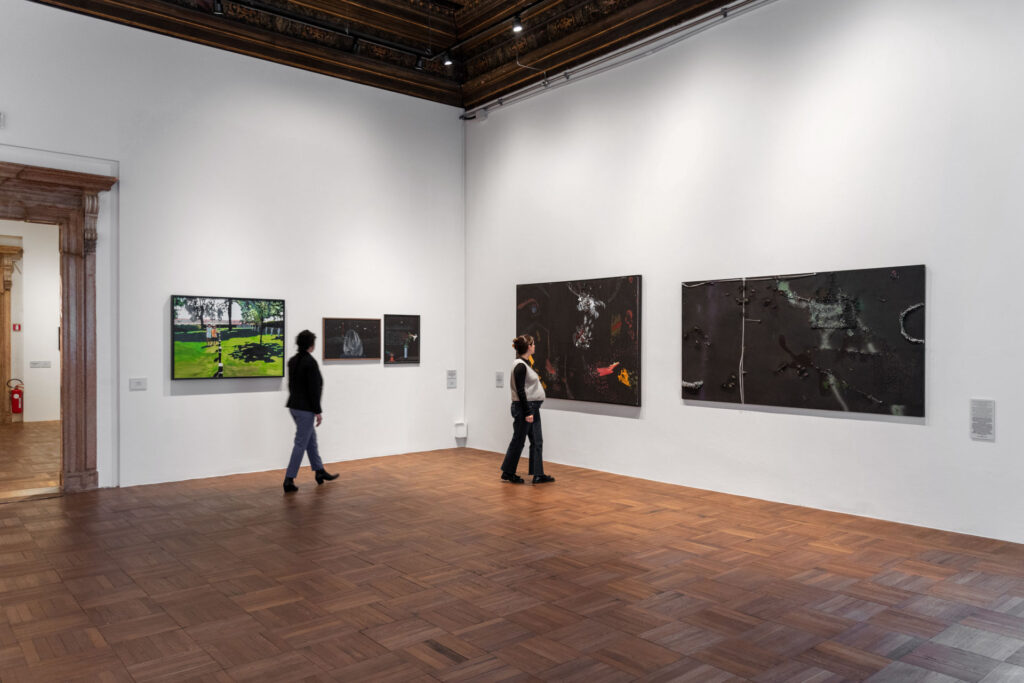Nella prima sala, dominata da una grande pittura su carta dedicata al conflitto del Vietnam, si apre il racconto sull’uso che Atkinson fa della pittura come forma di analisi politica e morale.