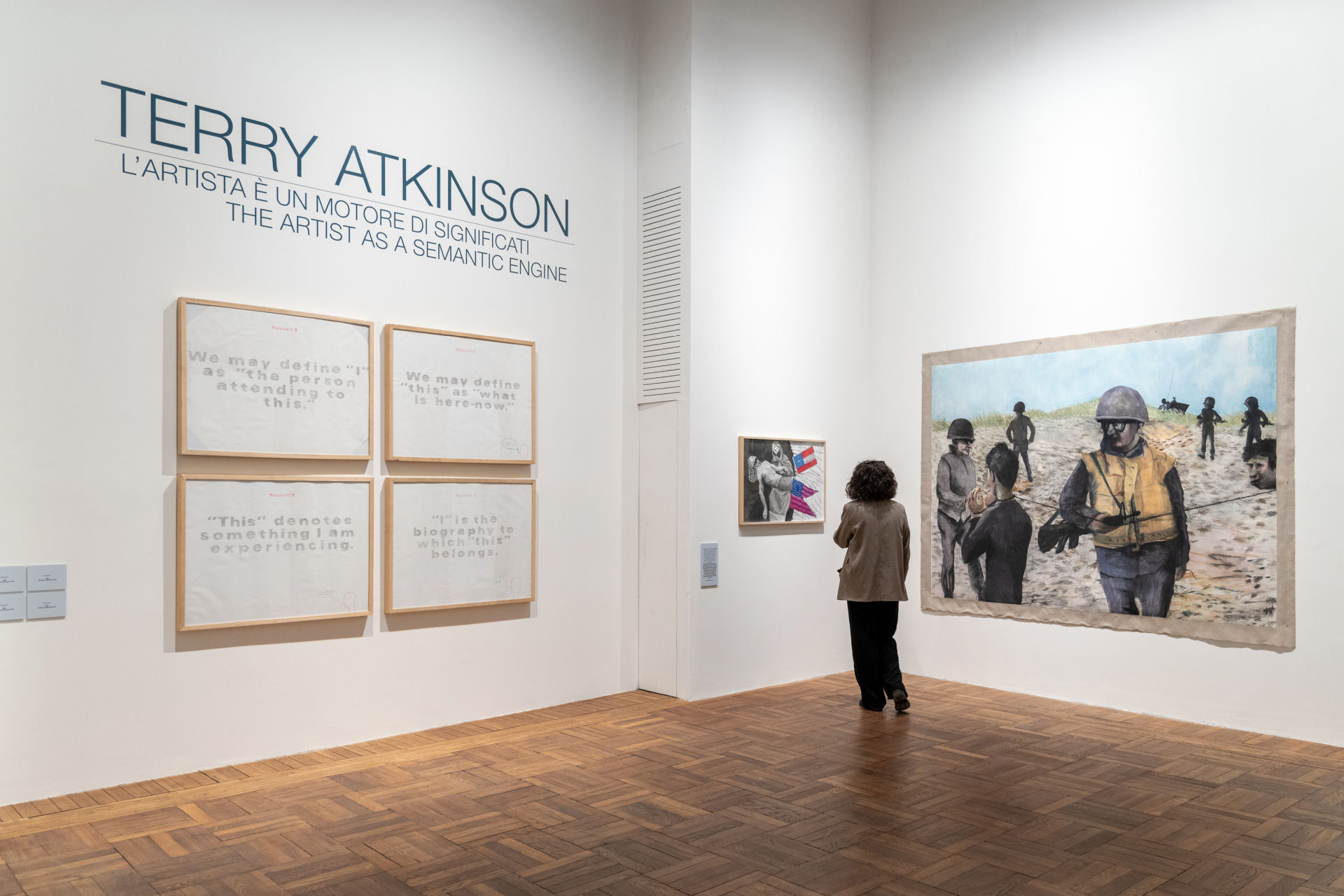 La mostra di Ca’ Pesaro TERRY ATKINSON. L’artista è un motore di significati è la prima personale che un’istituzione italiana dedica a Terry Atkinson (Thurnscoe, 1939) ripercorre oltre cinquant’anni di attività dell’artista inglese, mettendo in dialogo parola, immagine, storia e politica.